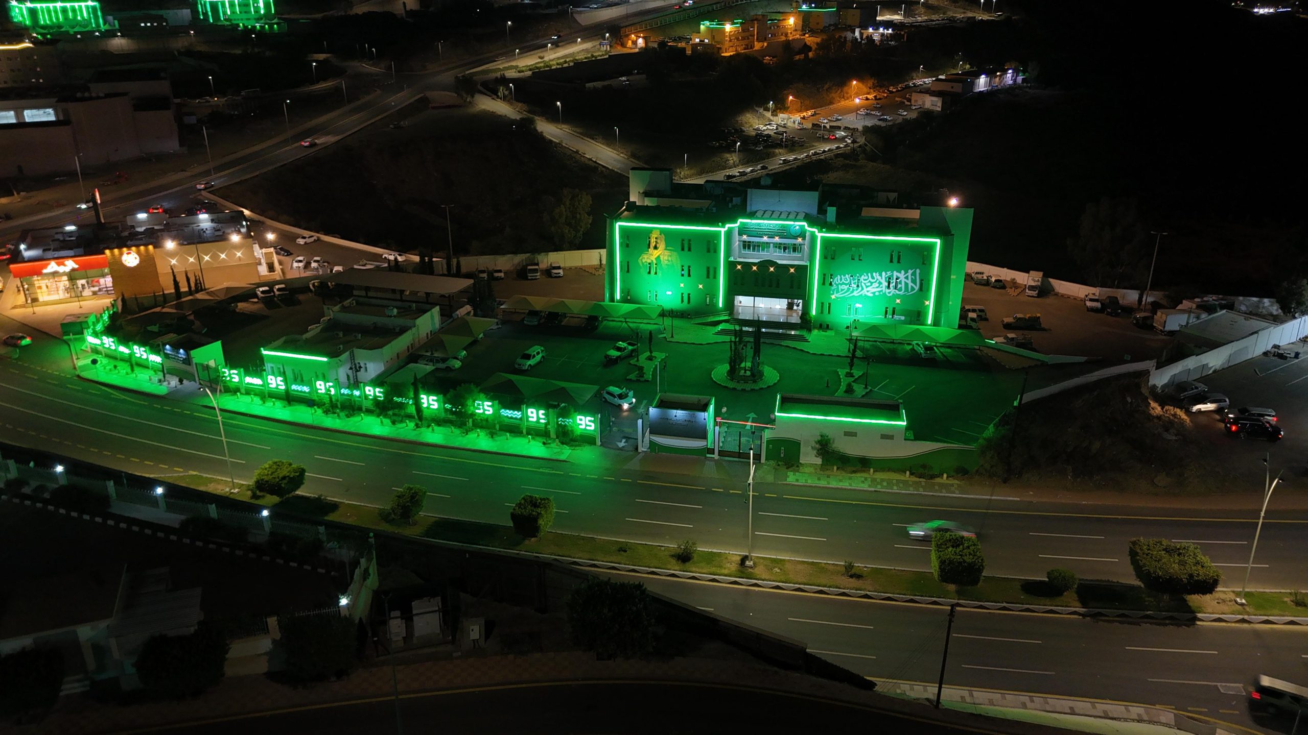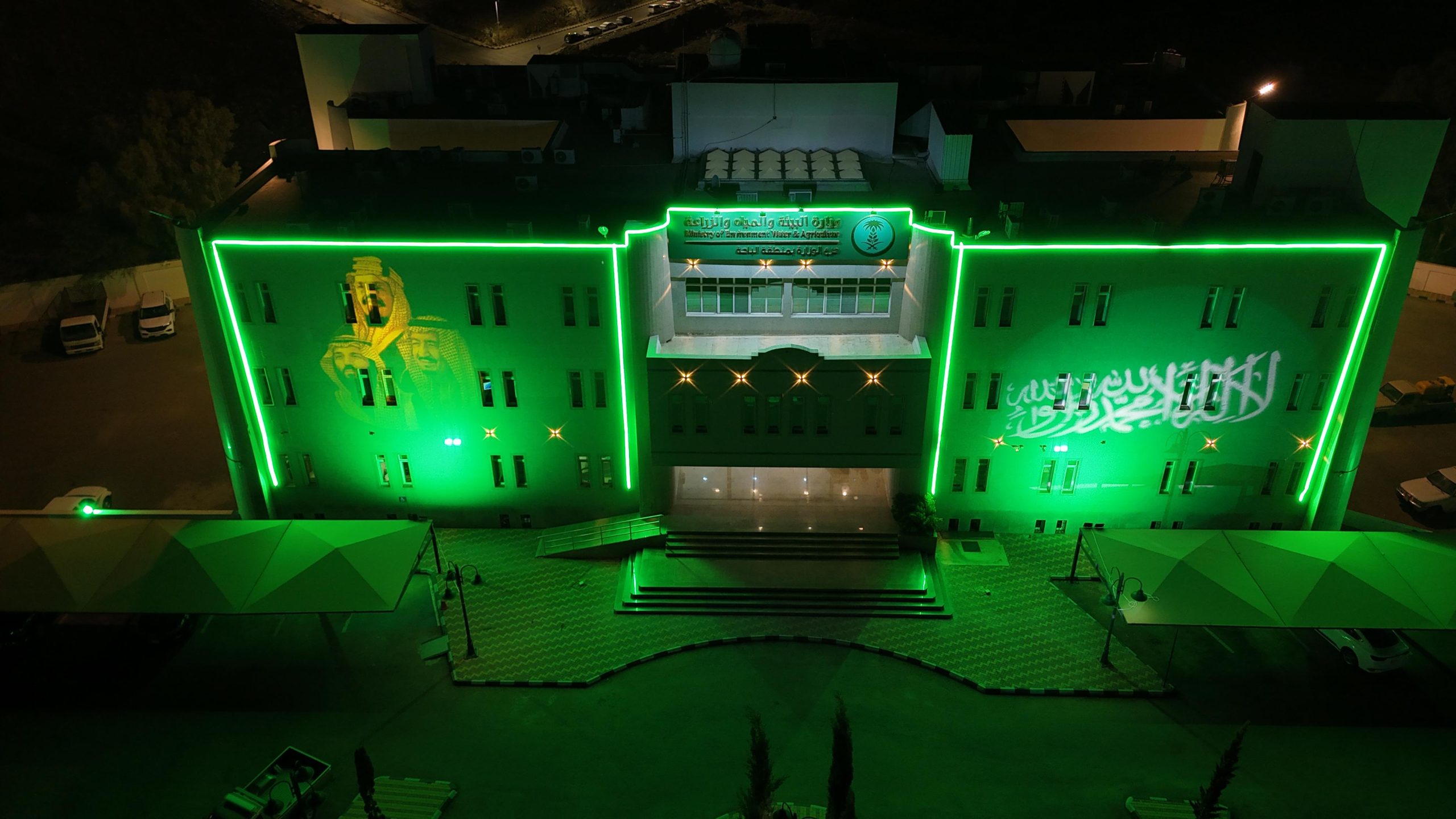 مبنى فرع وزارة البيئة والمياه والزراعة بالباحة يتزين بالوشاح الأخضر احتفاءً باليوم الوطني 95