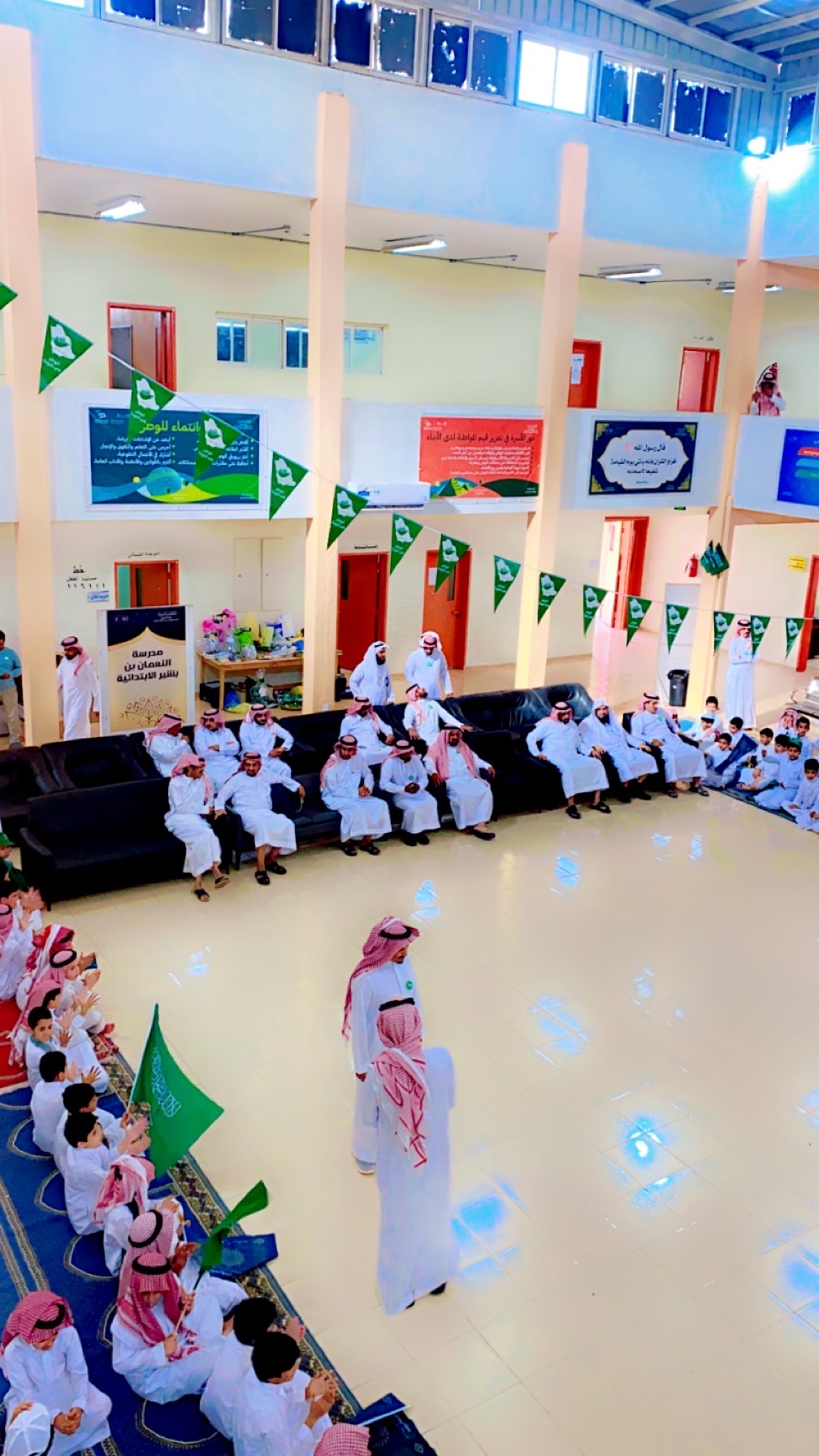 أحتفلت صباح اليوم الثلاثاء مدرسة النعمان بن بشير الابتدائية بمحافظة عفيف باليوم الوطني الـ 95 ، وذلك بحضور مدير المدرسة الأستاذ / ياسر بن صنات العتيبي وجميع منسوبي المدرسة من معلمين وإداريين وطلاب .