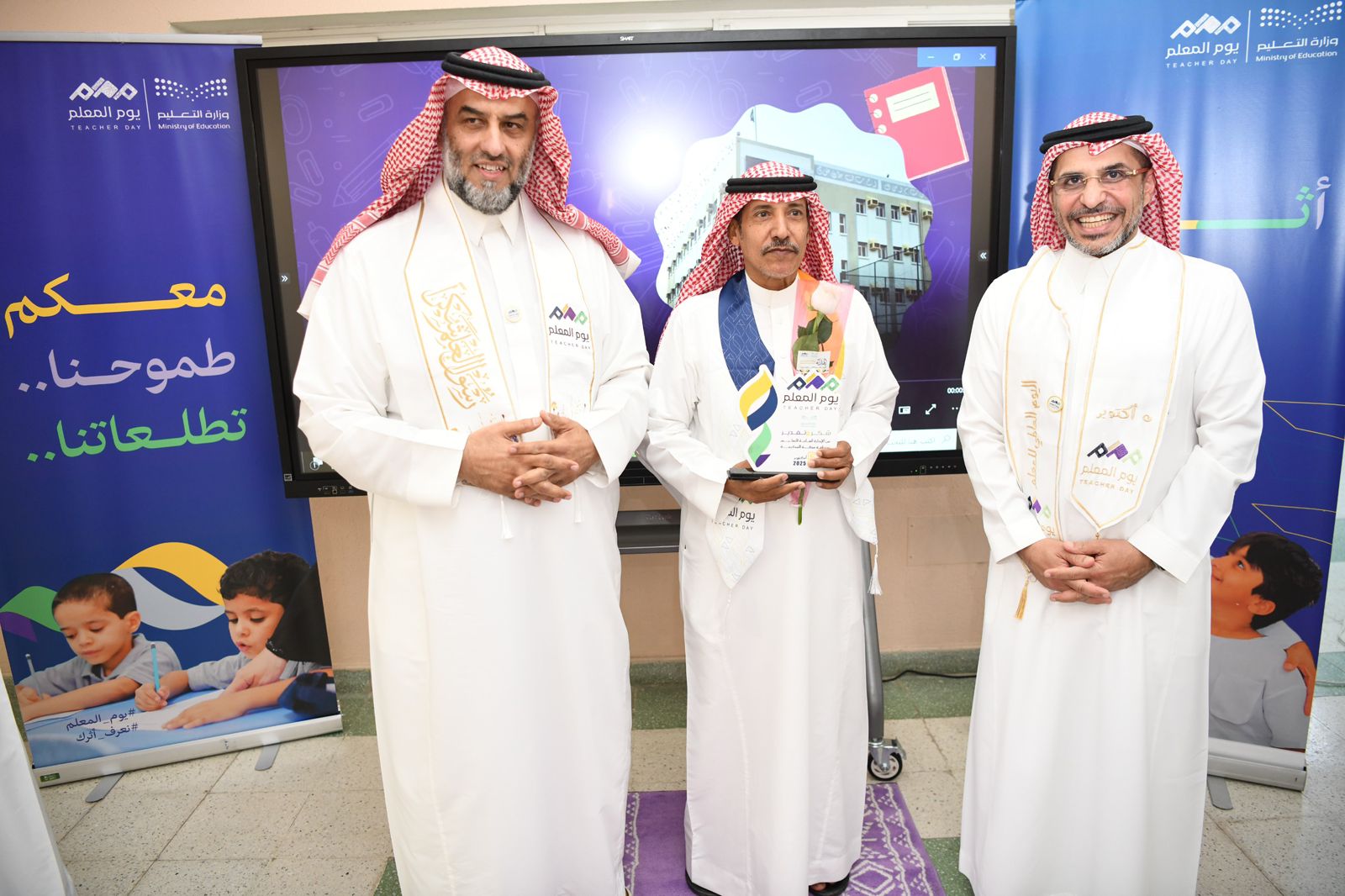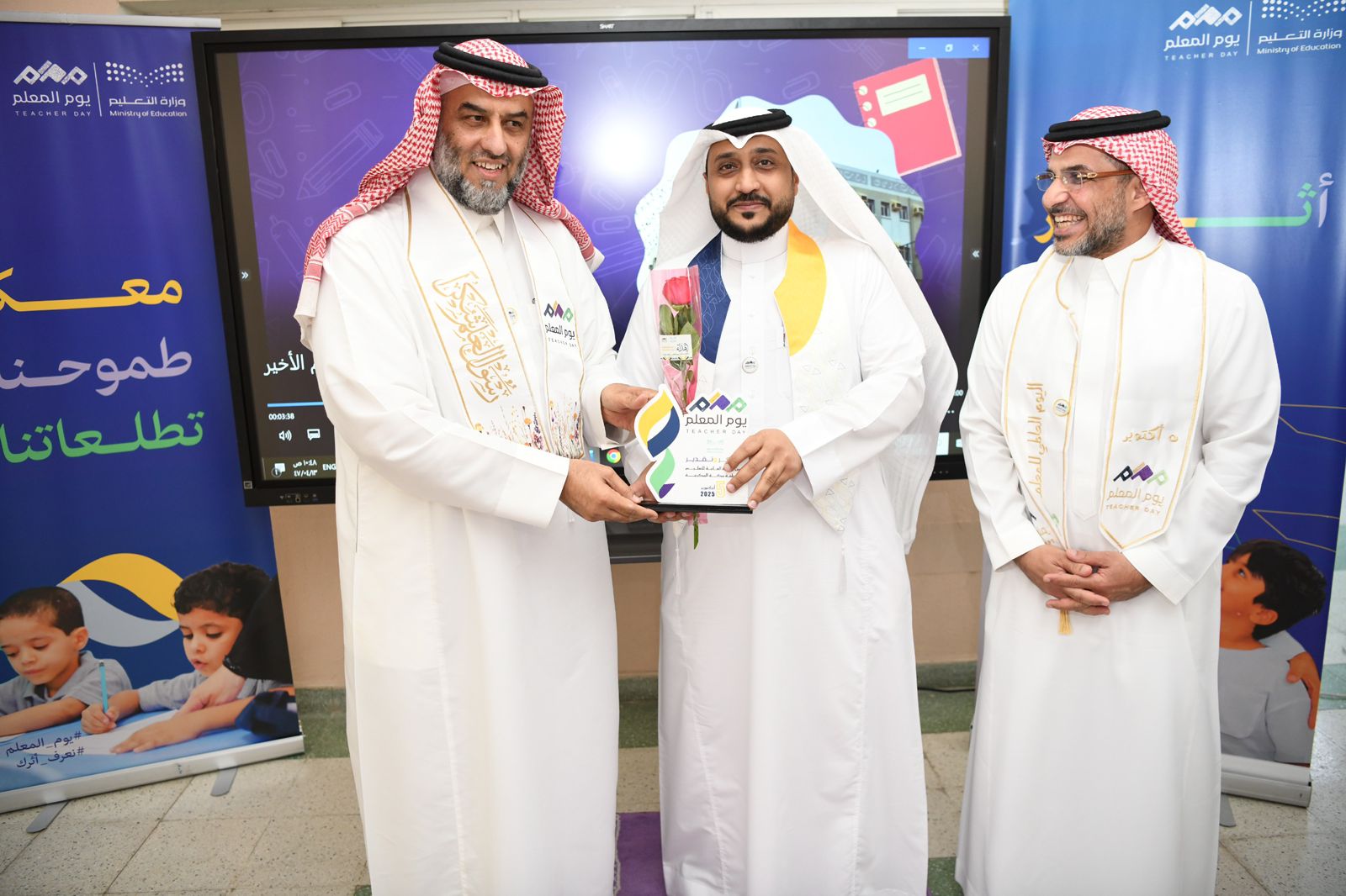 وقد كرما 63 معلماً بالمدرسة وذلك بهدف إبراز إنجازات المعلمين ، وتسليط الضوء على دورهم المحوري في بناء الأجيال ونشر المعرفة ، ودورهم في تحقيق التنمية المستدامة والارتقاء بالمجتمع، من خلال إعداد أجيال واعدة ومؤهلة قادرة على مواجهة تحديات المستقبل والمنافسة عالميًا، بما ينسجم مع طموحات المملكة ورؤيتها للمستقبل.