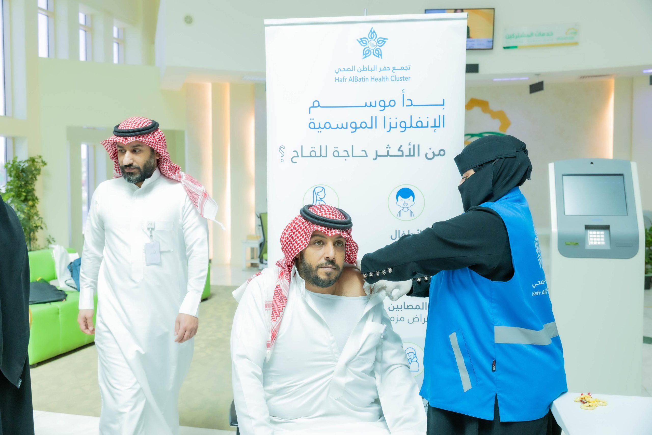 الإنفلونزا الموسمية وميادرة “حنّا نجيك” التي أطلقها تجمع حفر الباطن الصحي، ودشنها صاحب السمو الأمير عبدالرحمن بن عبدالله بن فيصل محافظ حفرالباطن، بهدف تعزيز الرعاية الصحية الشاملة ورفع الوعي الوقائي.