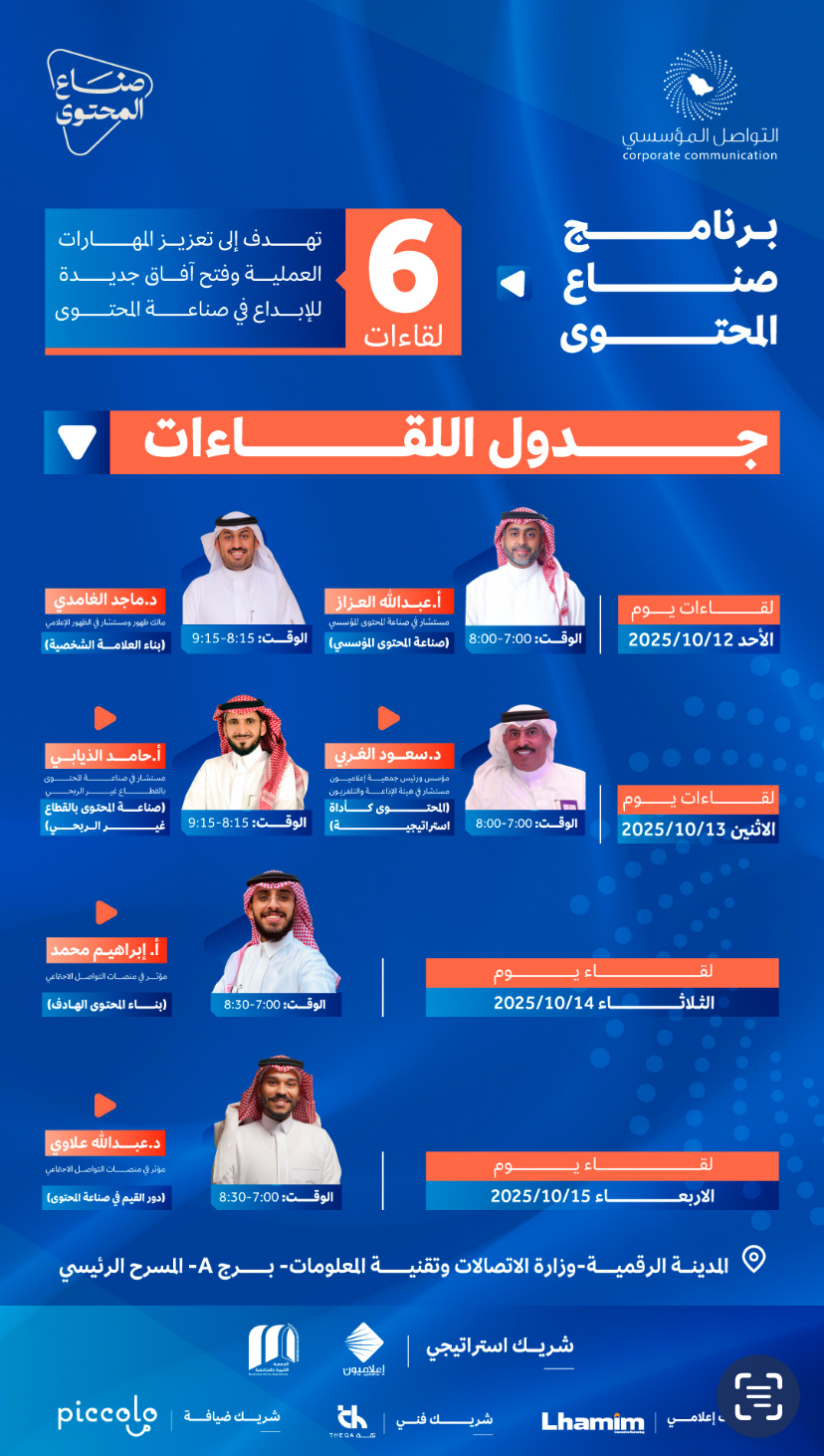 برنامج “صُنّاع المحتوى” ينطلق من الرياض بمشاركة مؤثرين وخبراء بالإعلام