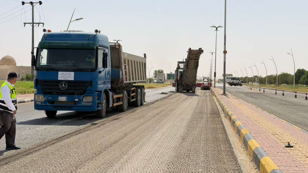 ويشمل المشروع أعمال كشط وإعادة سفلتة بمساحة إجمالية تصل إلى 62.000 متر مربع، إلى جانب تنفيذ دهانات طرق عاكسة بمساحة 3,500 م²، وذلك لتعزيز الرؤية الليلية وضمان سلامة المركبات والمشاة.