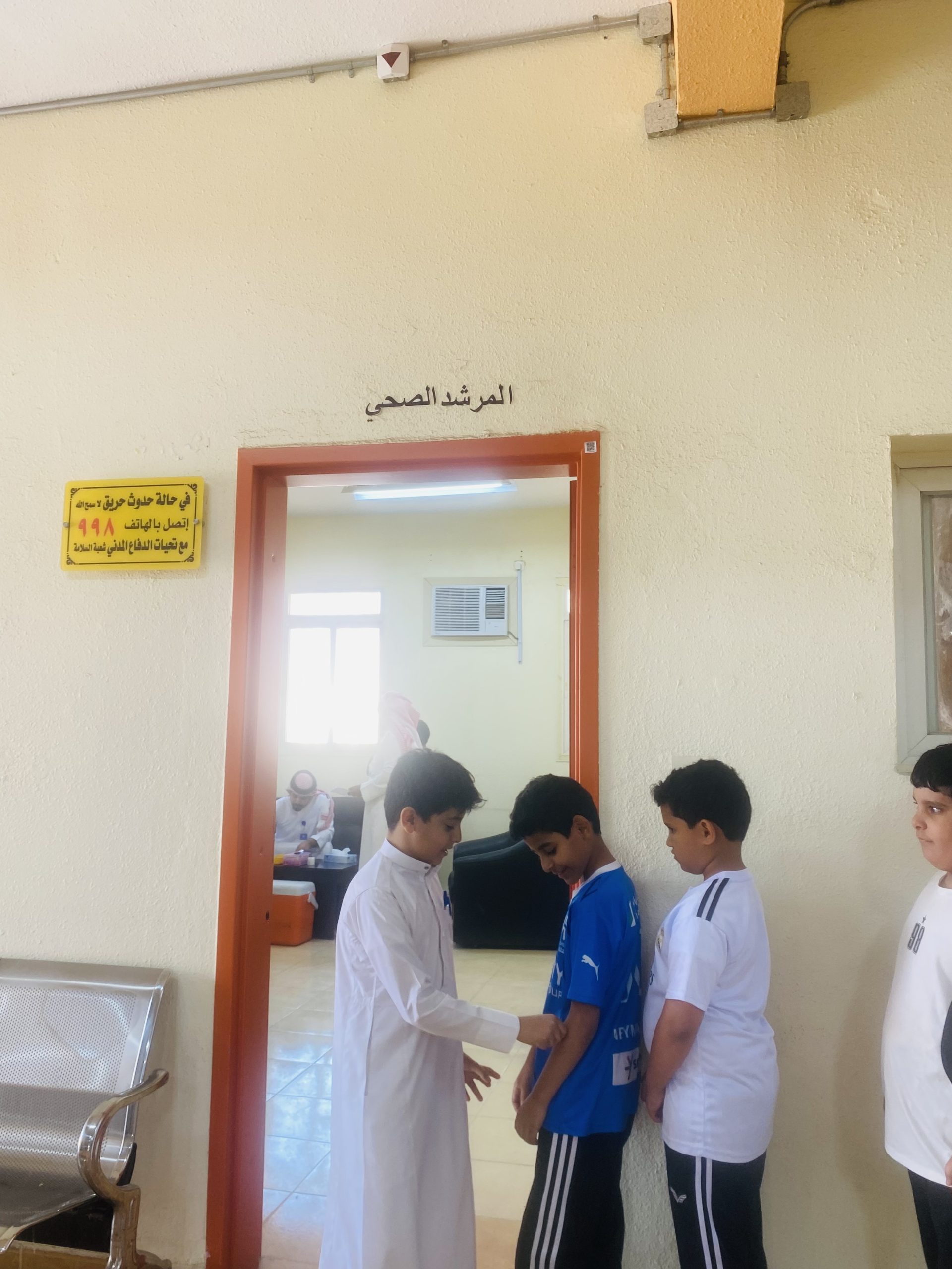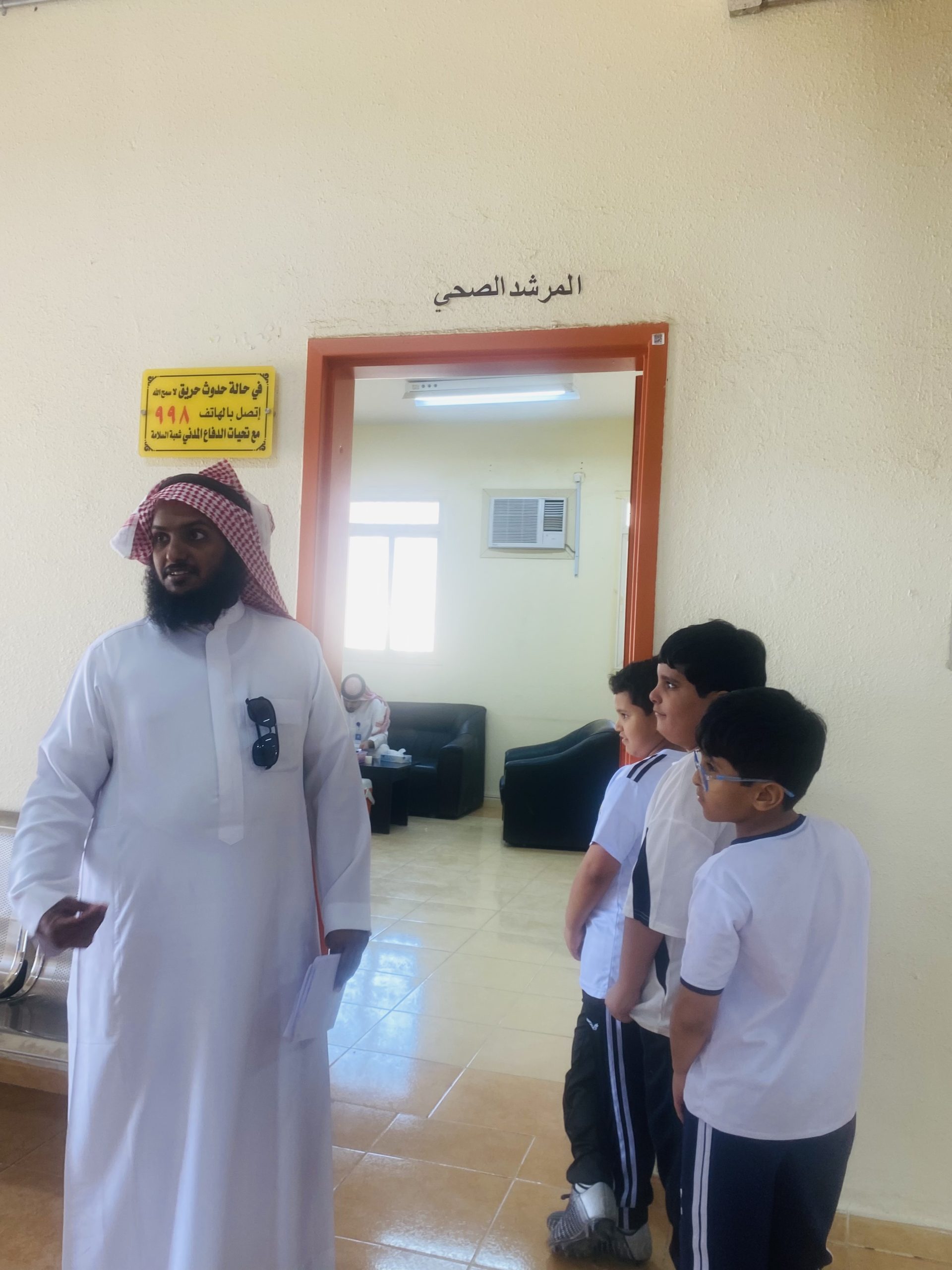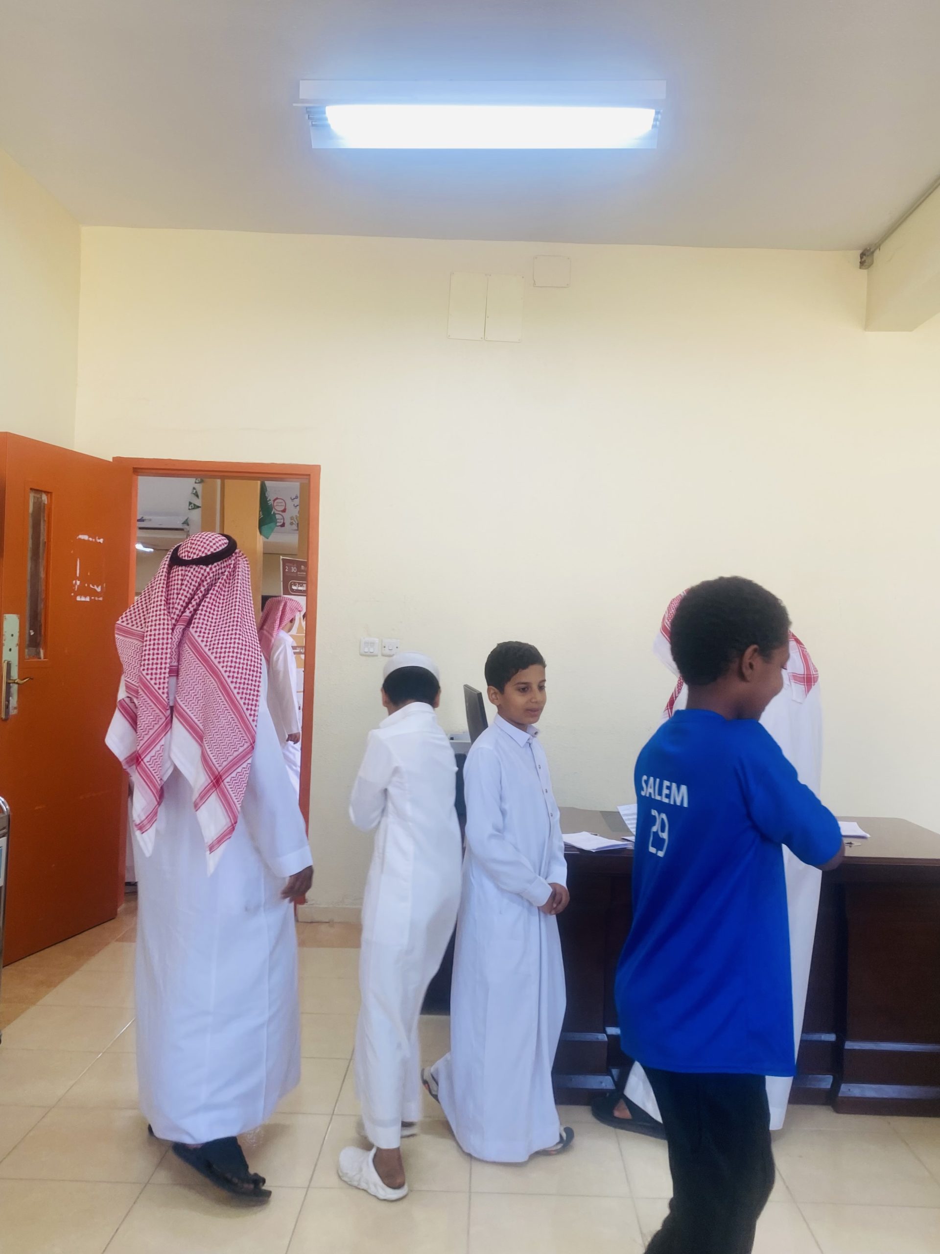 وكان في استقبالهم مدير المدرسة الأستاذ / ياسر بن صنات العتيبي والمدير الإداري الأستاذ / عمار العمار ووكلاء المدرسة والمرشد الصحي.