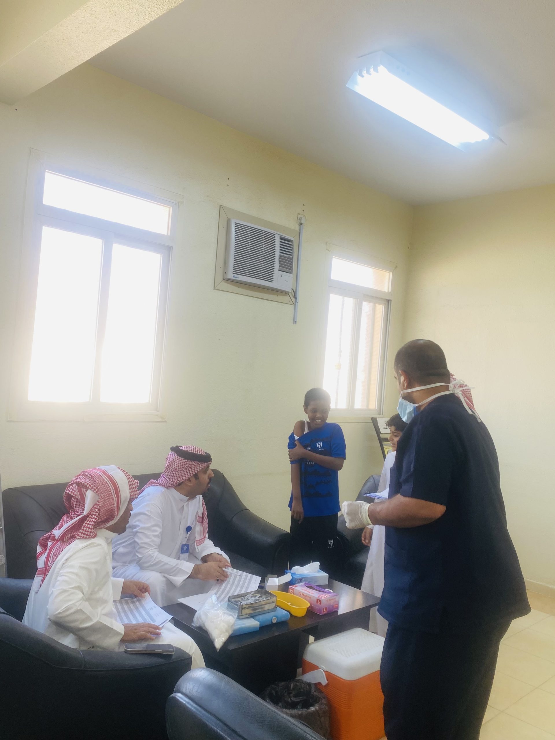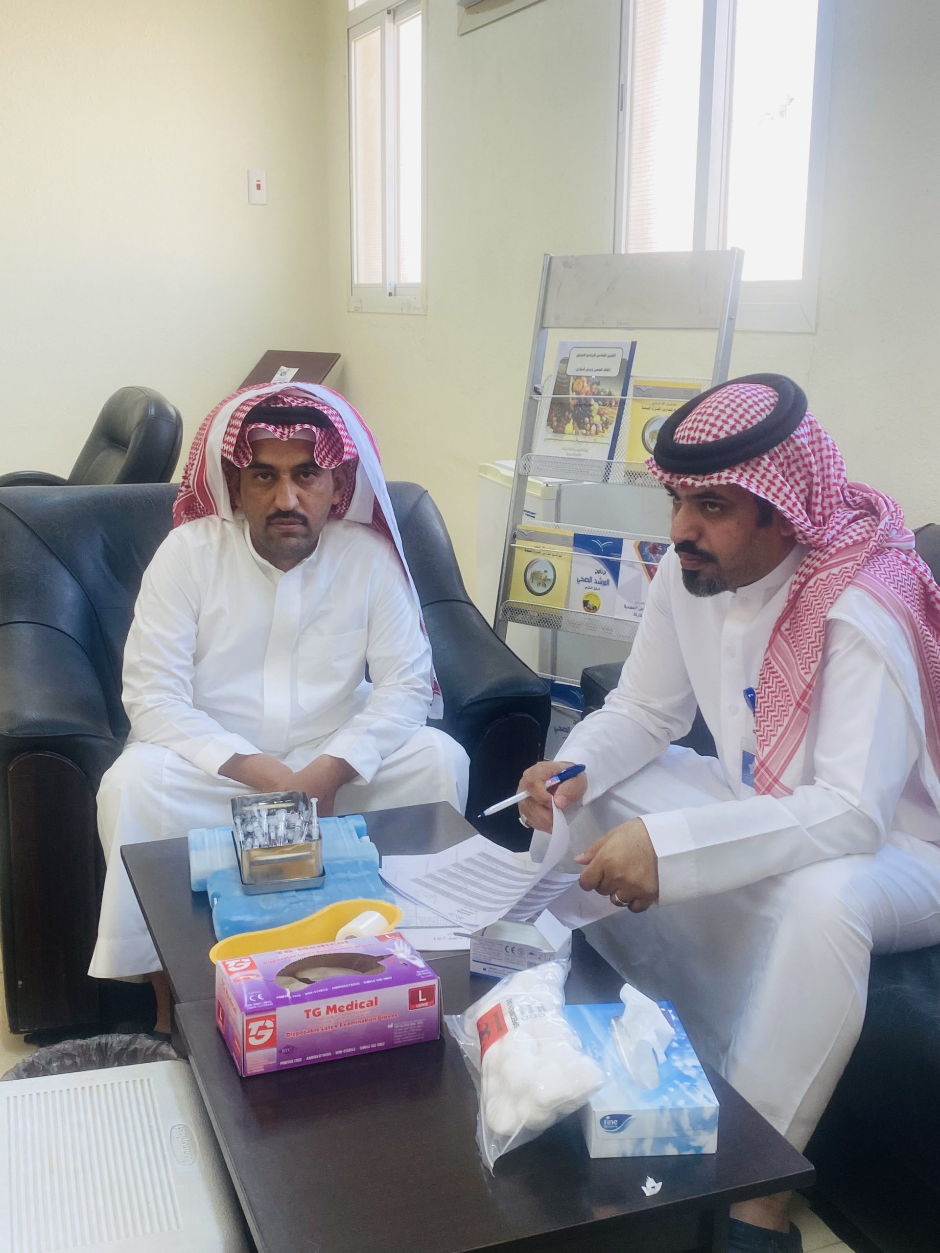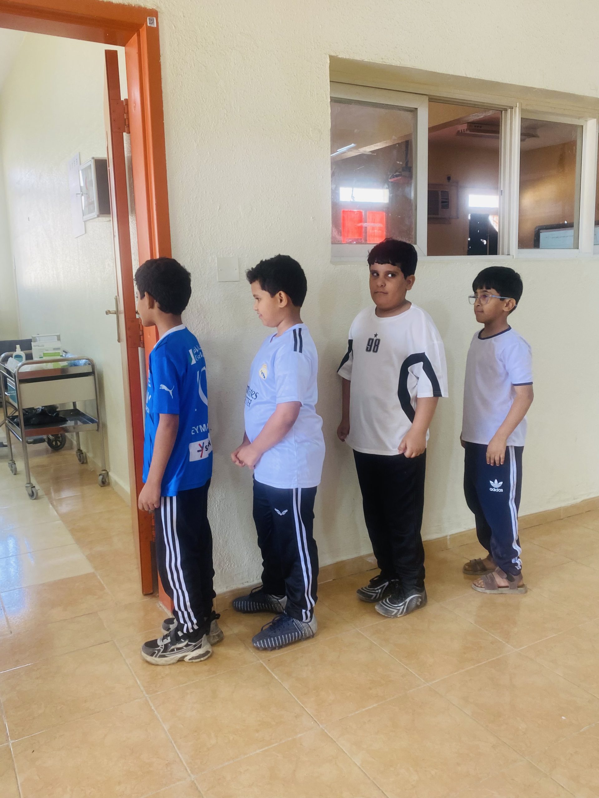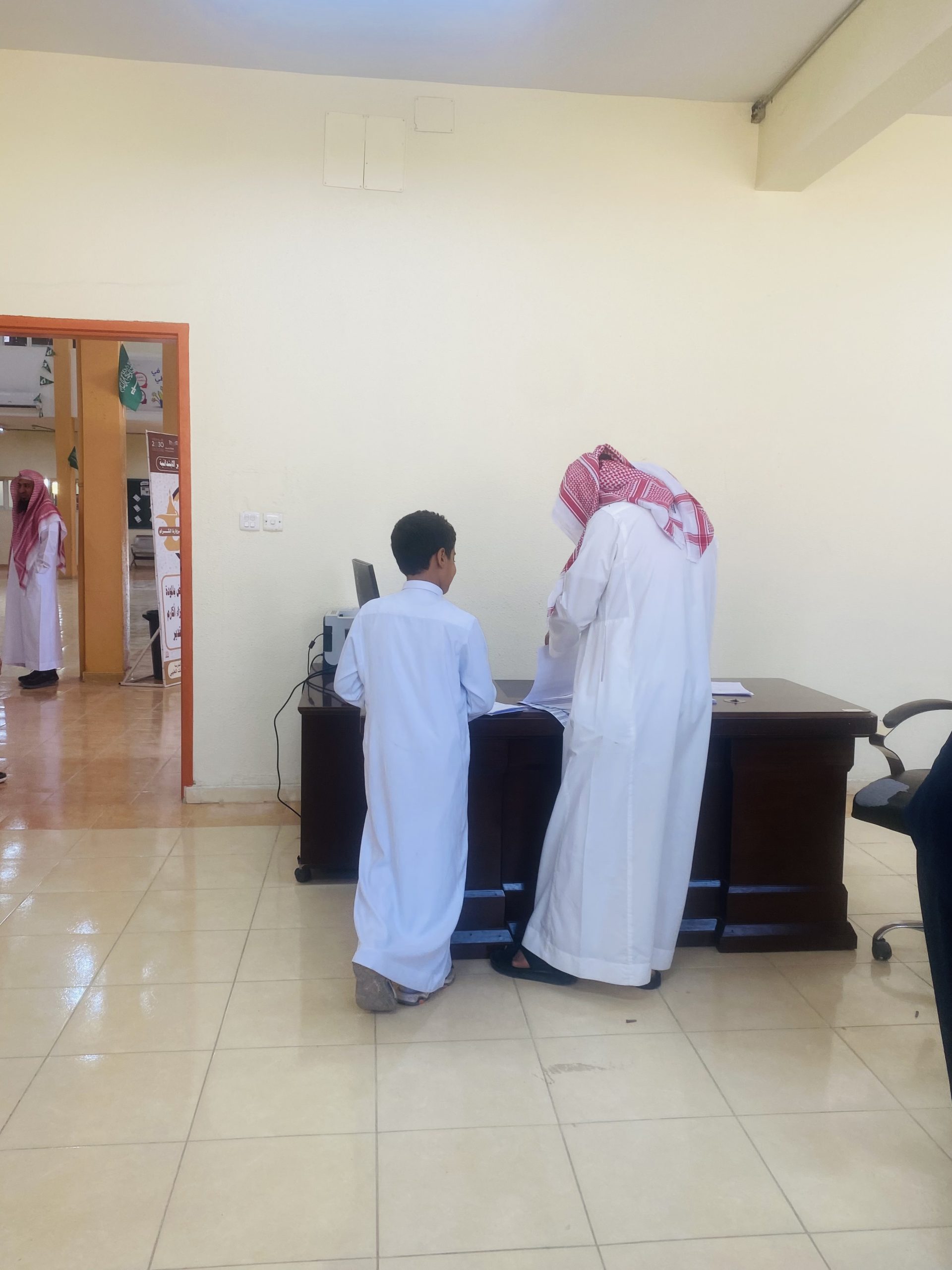 وكان في استقبالهم مدير المدرسة الأستاذ / ياسر بن صنات العتيبي والمدير الإداري الأستاذ / عمار العمار ووكلاء المدرسة والمرشد الصحي.