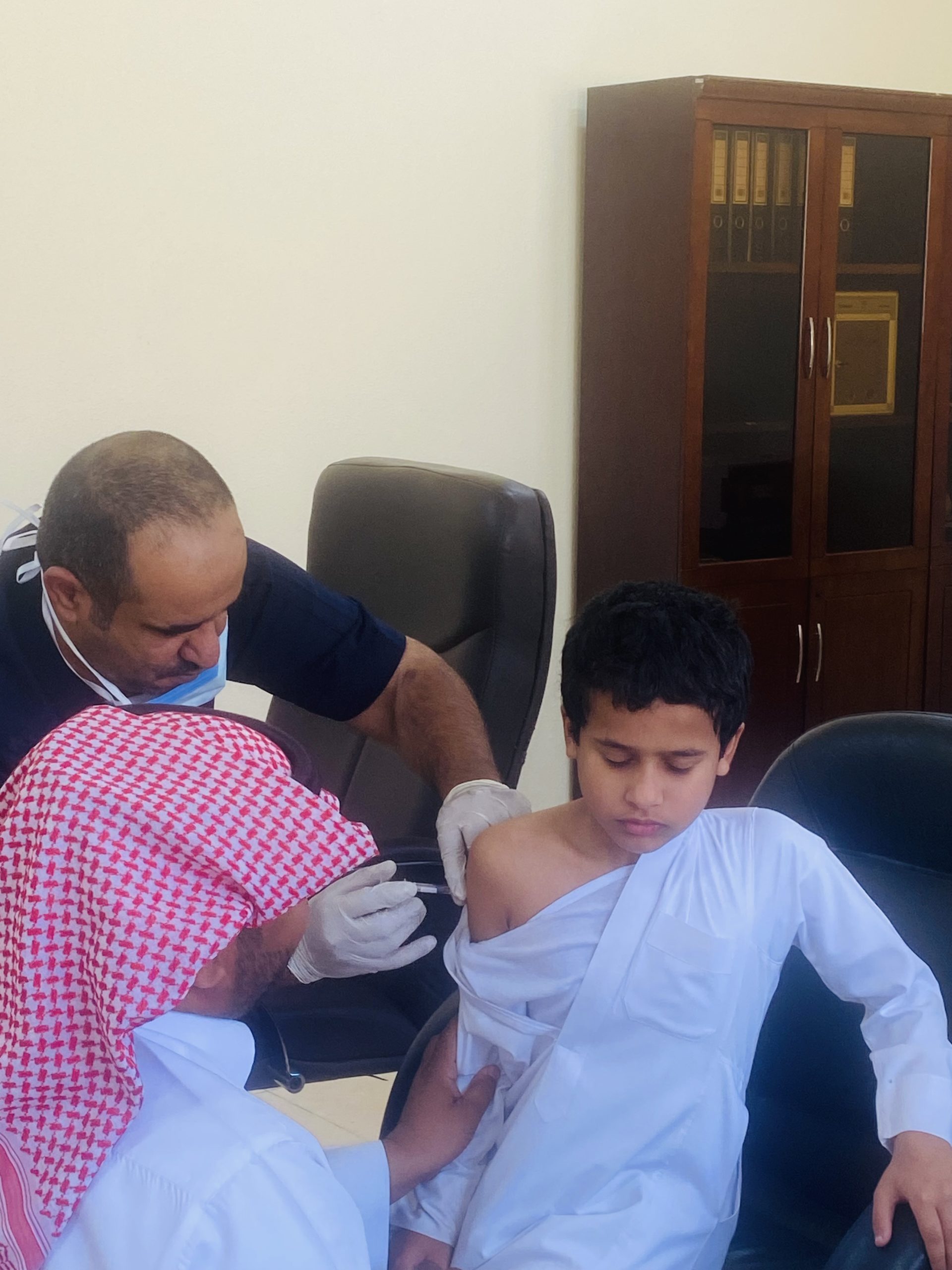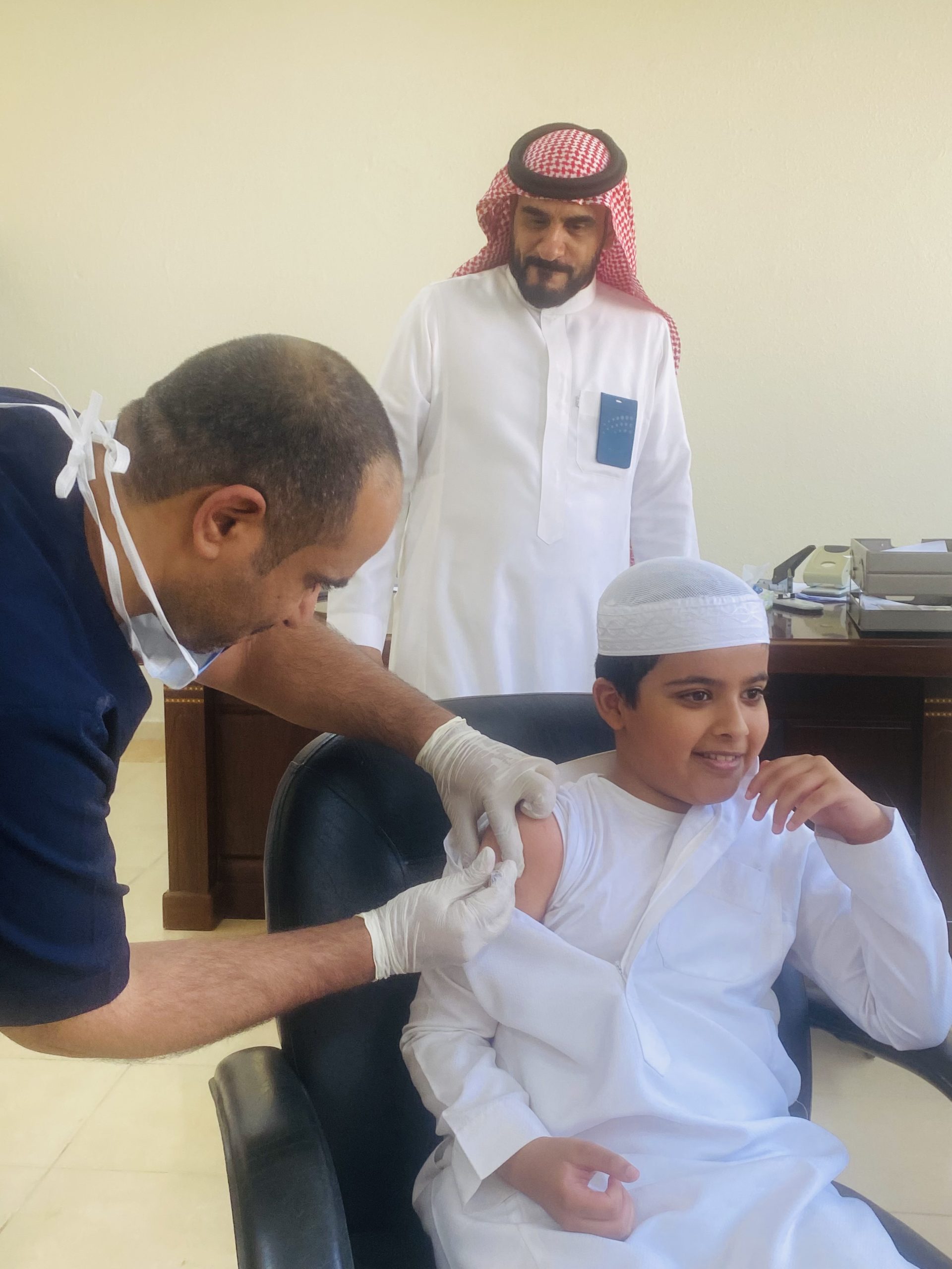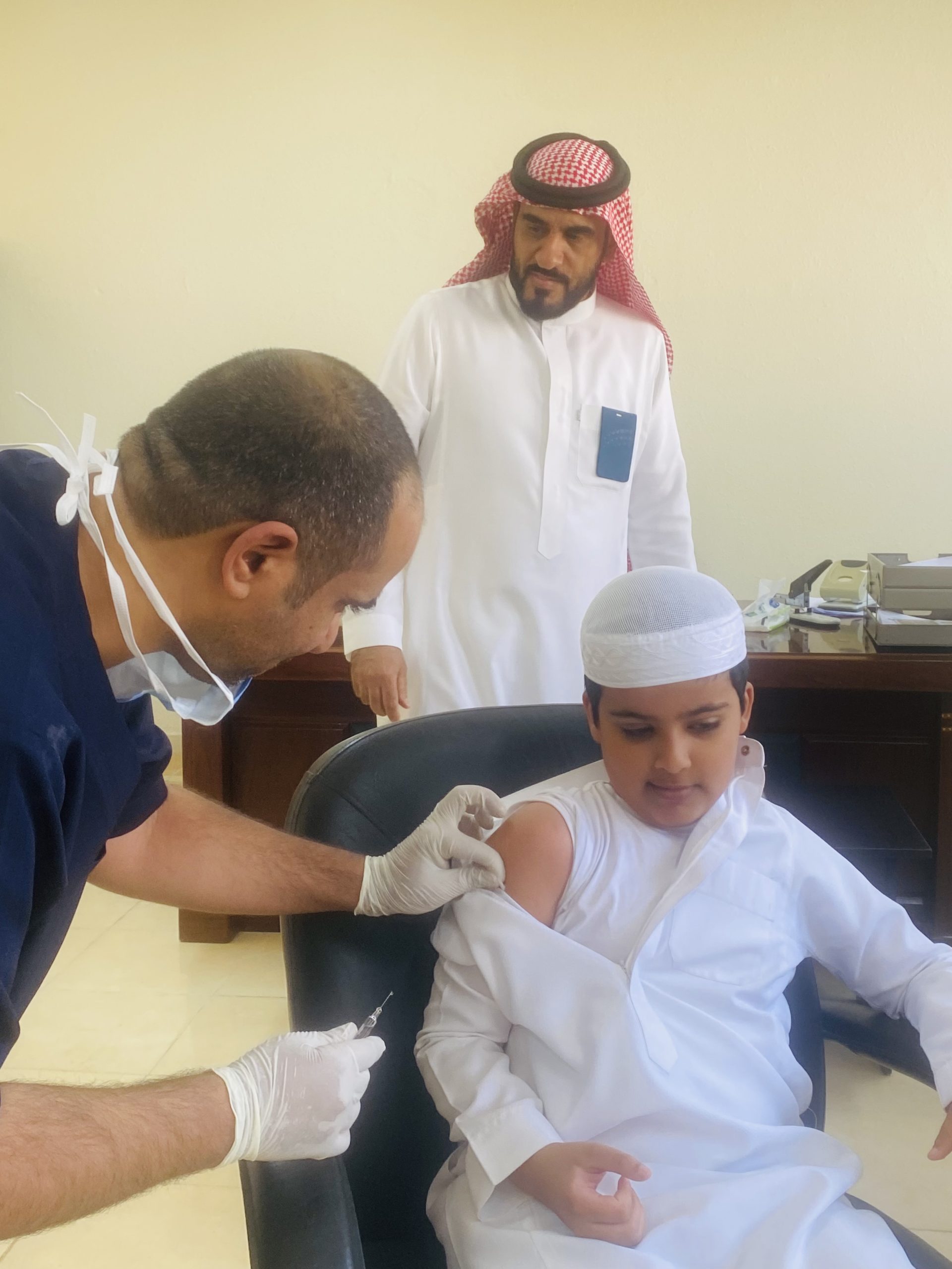 حيث كان أول من أخذ اللقاح للإنفلونزا الموسمية مدير المدرسة وعدداً من المنسوبين من معلمين وإداريين وطلاب ، وقد كان اختياري.