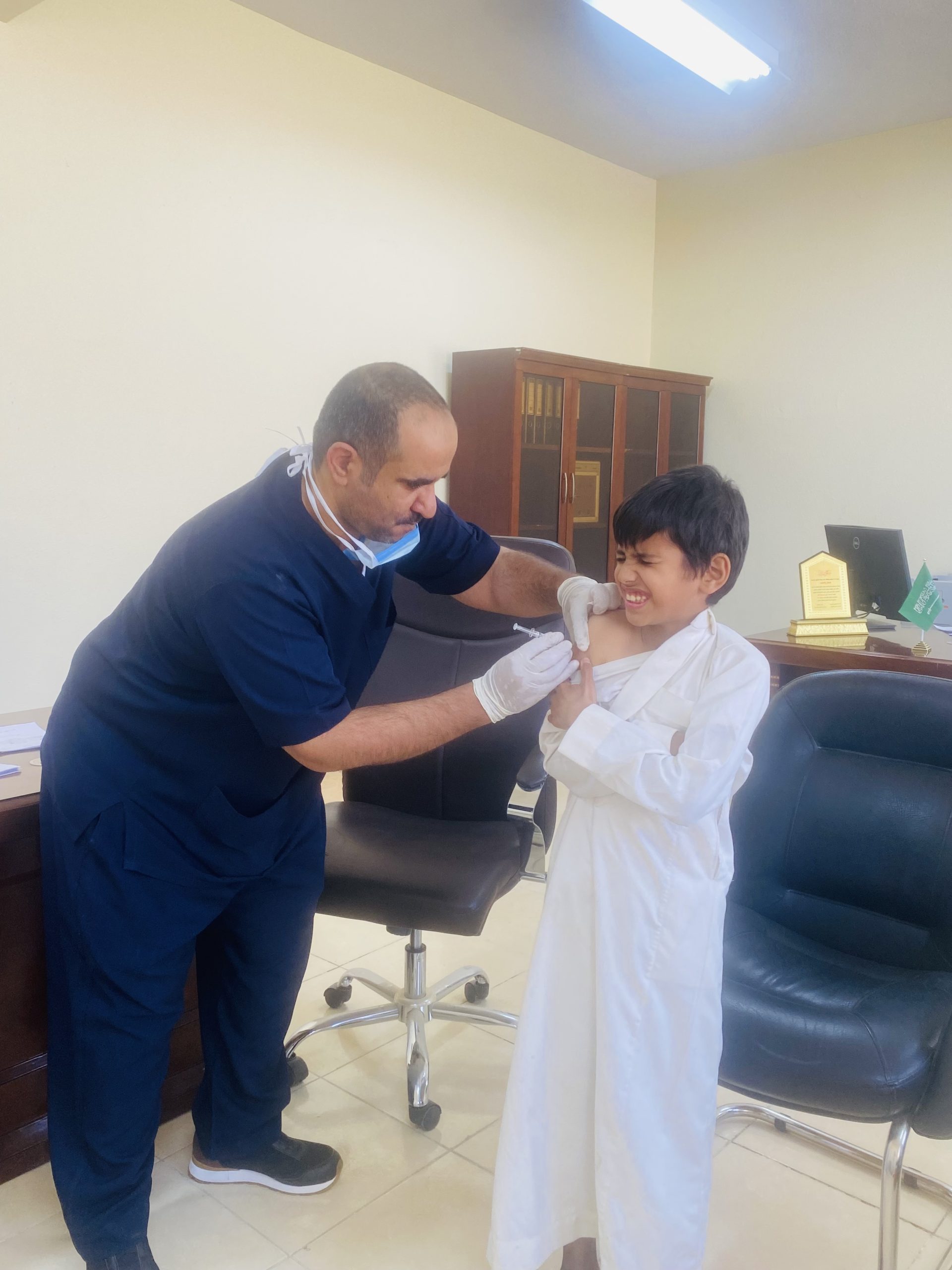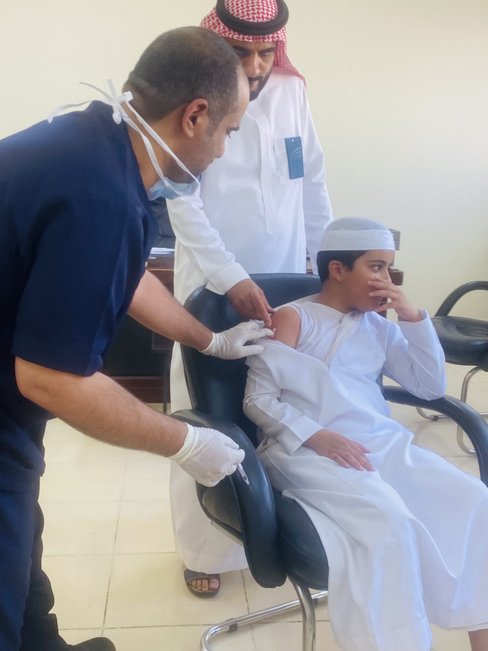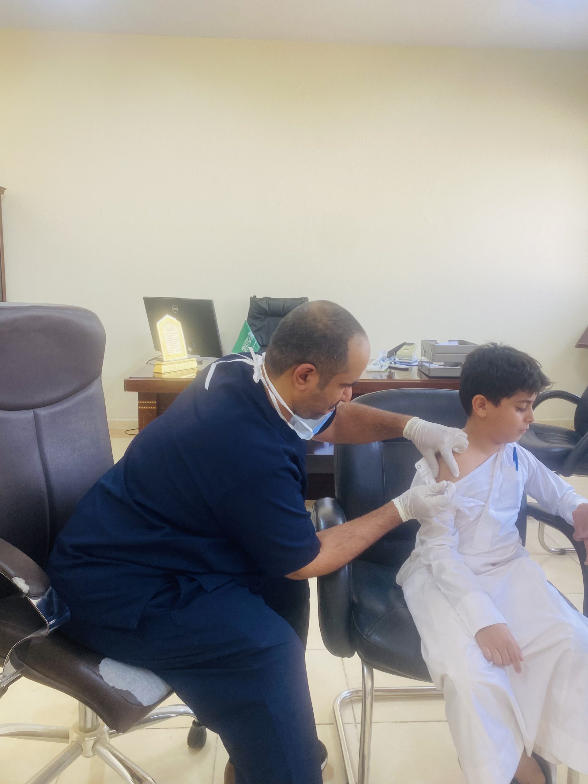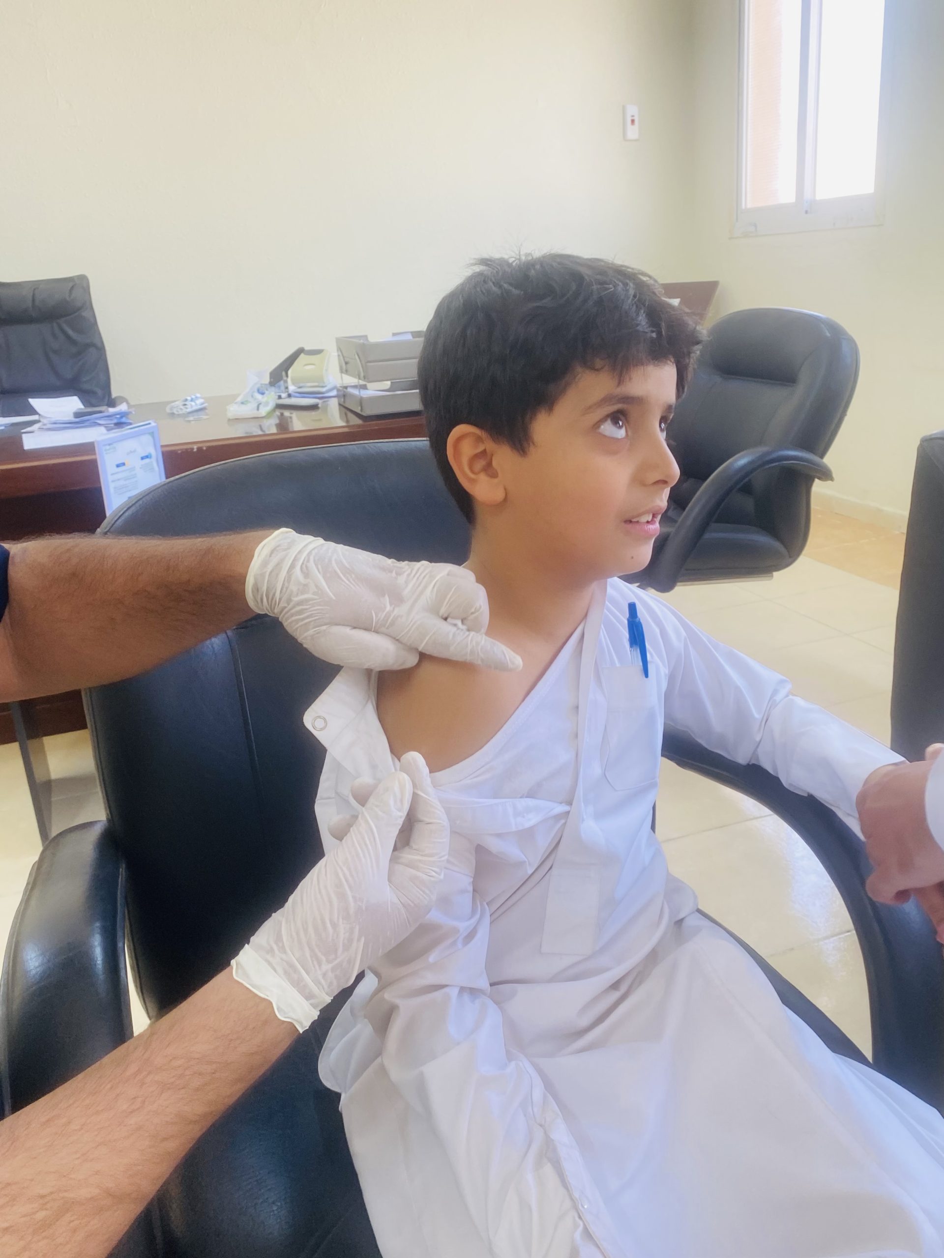 حيث كان أول من أخذ اللقاح للإنفلونزا الموسمية مدير المدرسة وعدداً من المنسوبين من معلمين وإداريين وطلاب ، وقد كان اختياري.