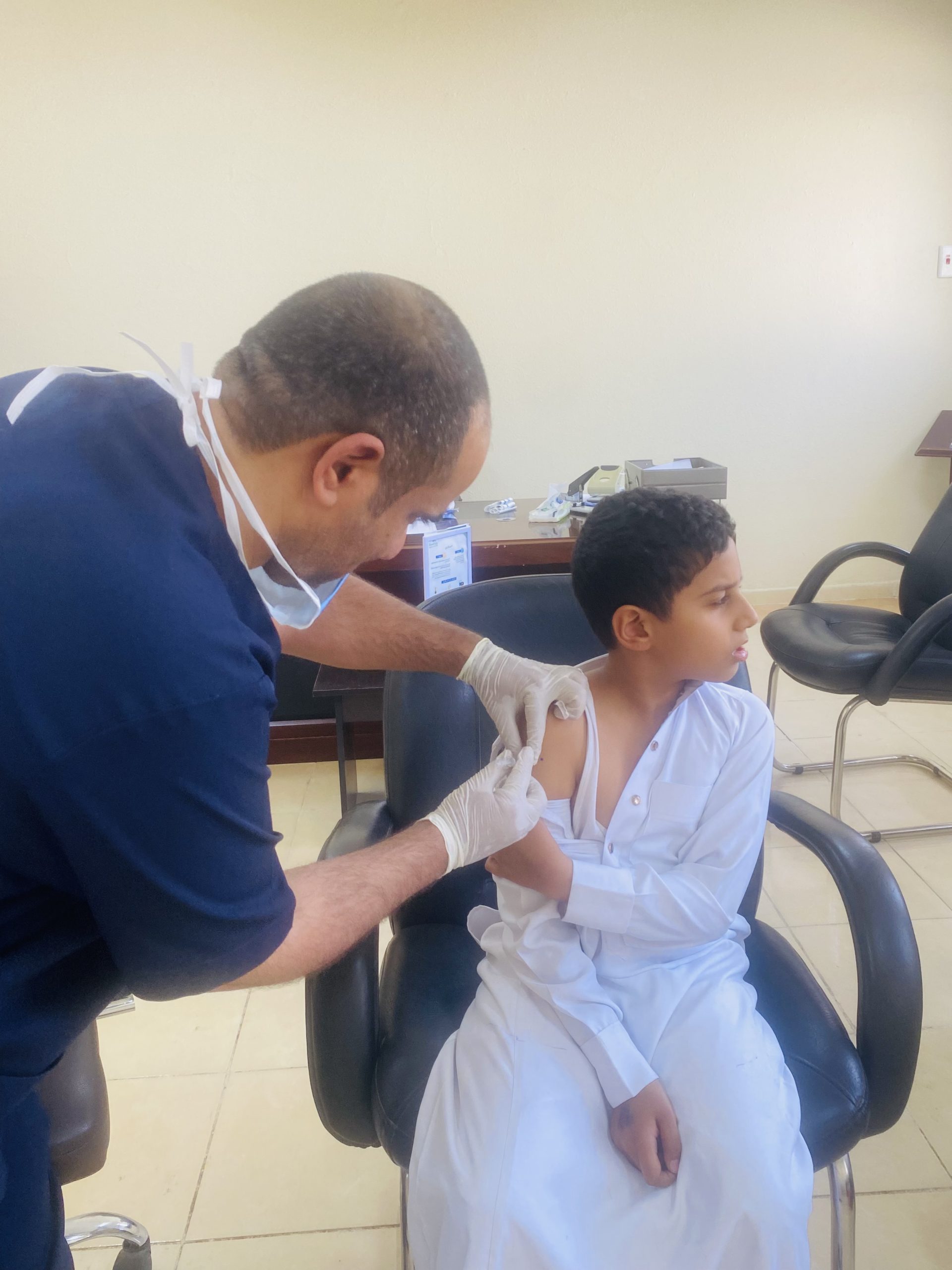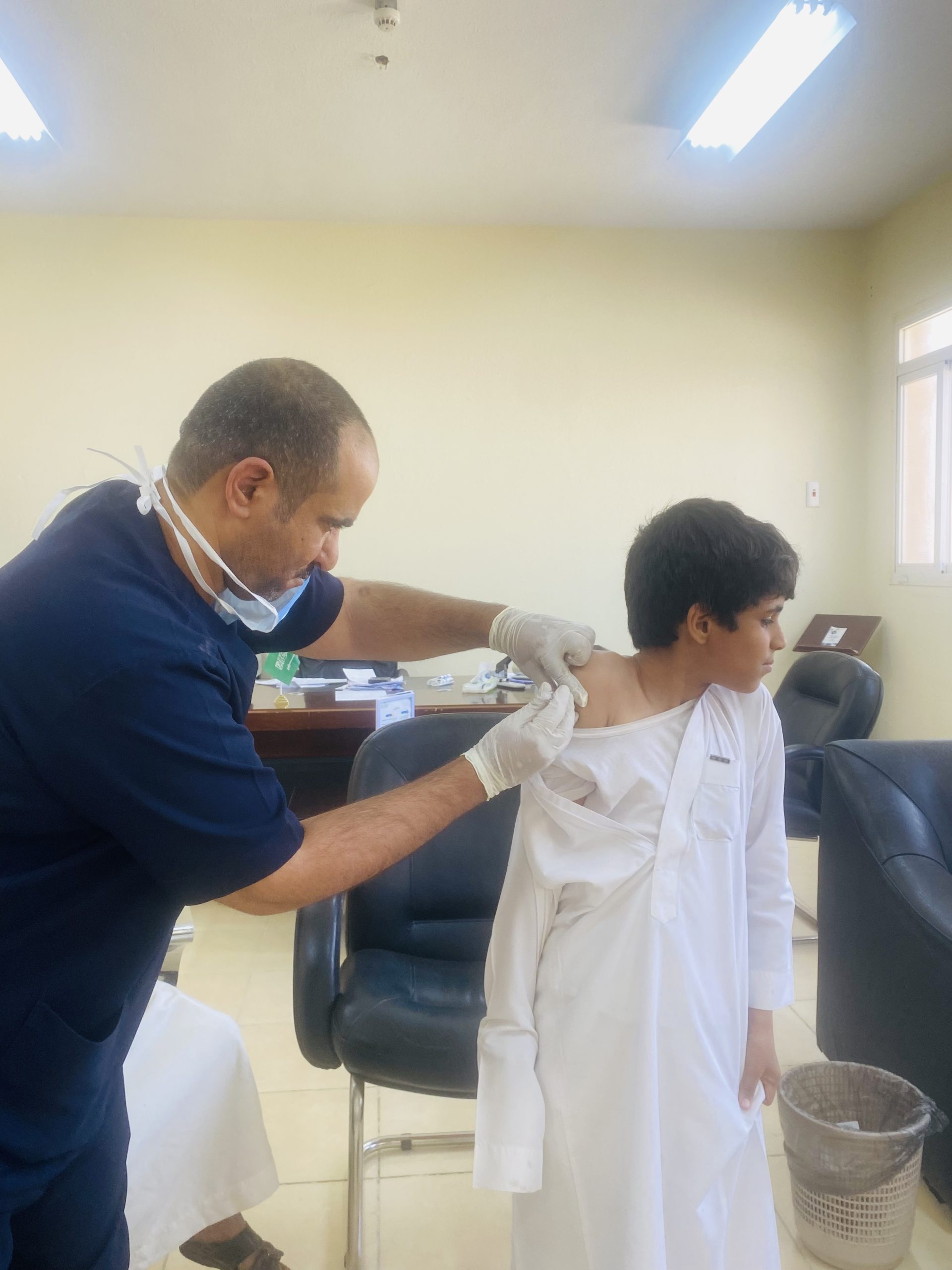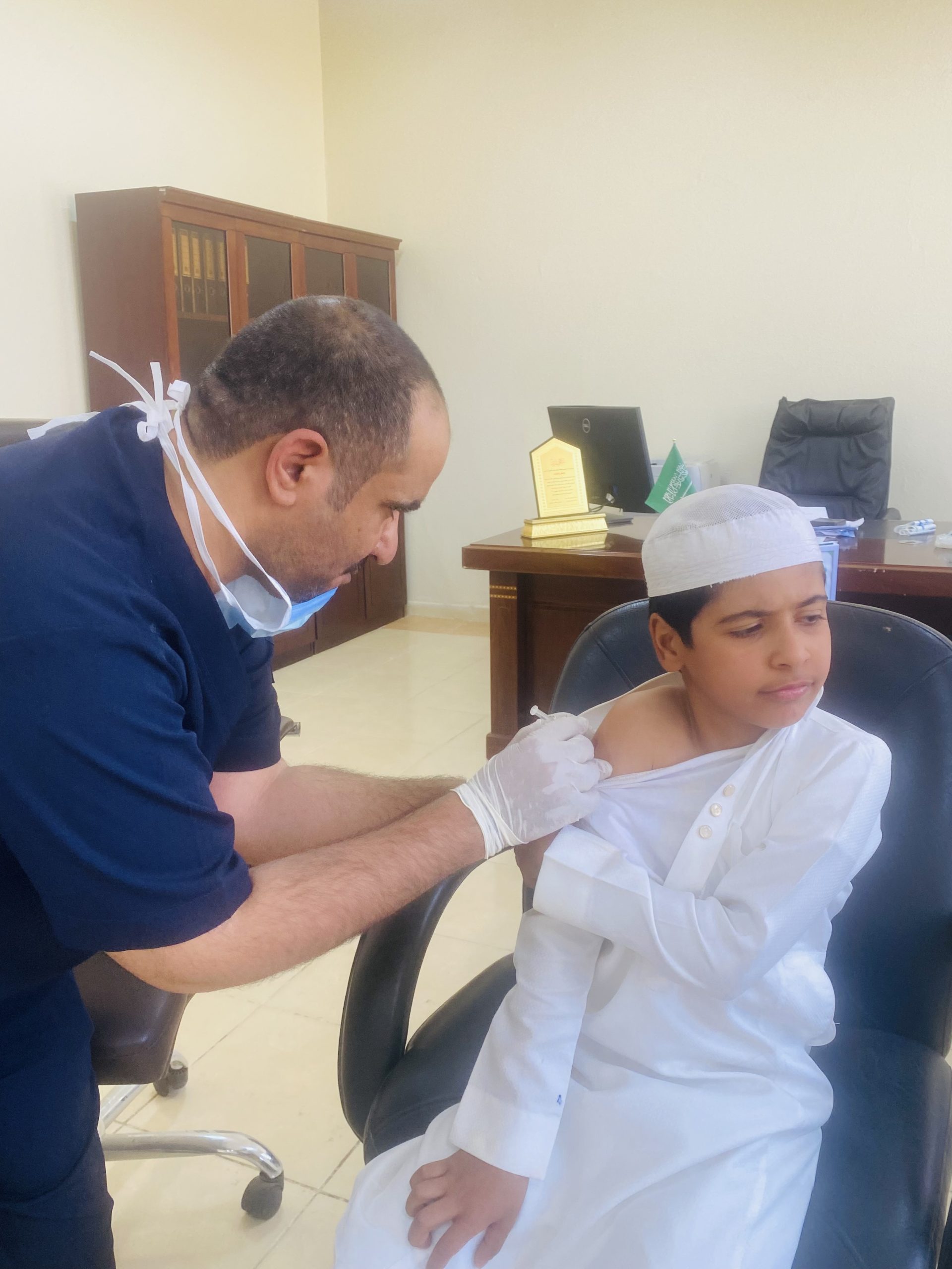 بالصور : تقديم لقاح الإنفلونزا الموسمية في مدرسة النعمان بن بشير الإبتدائية بمحافظة عفيف