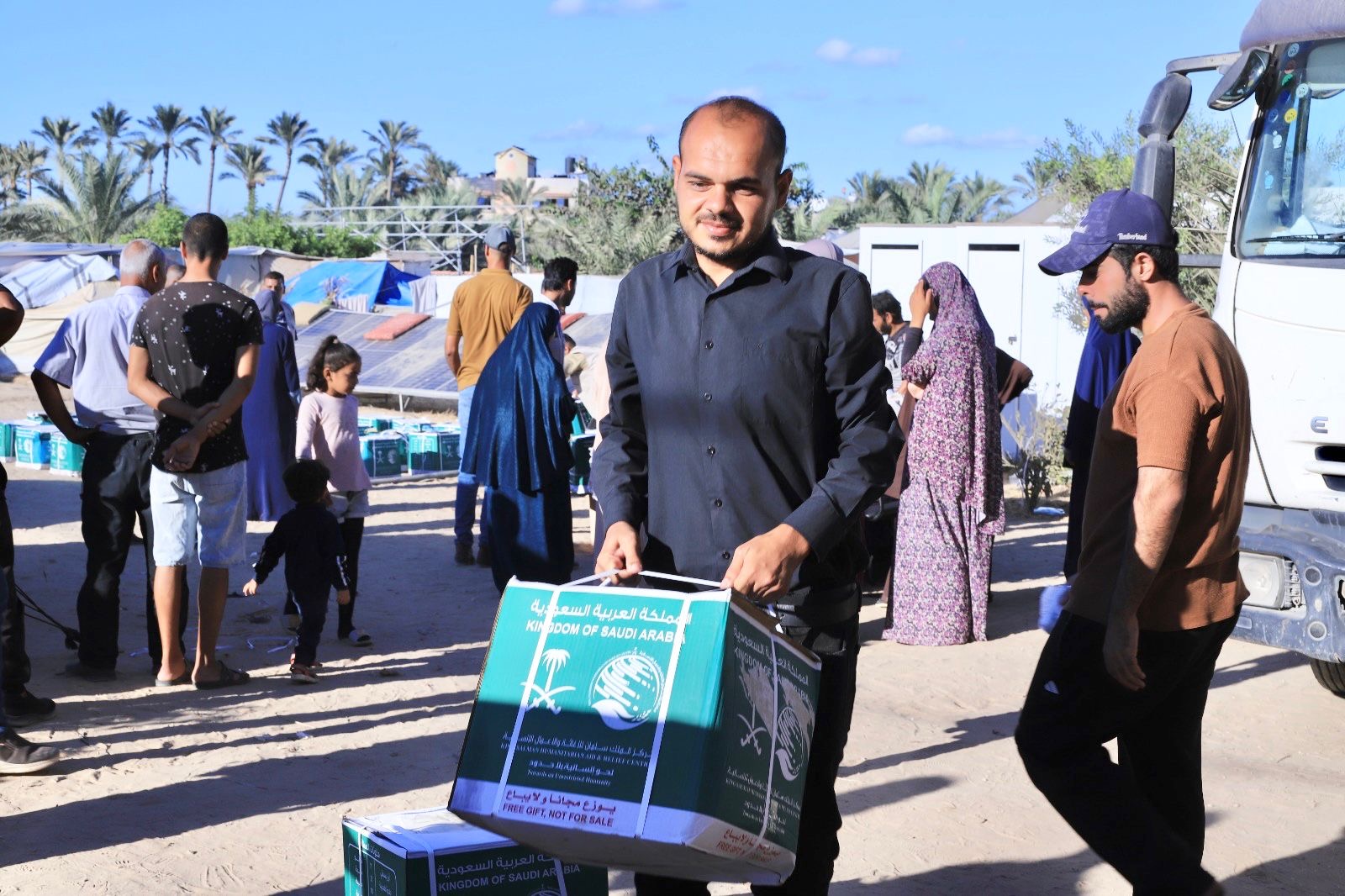 مركز الملك سلمان للإغاثة يوزع مساعدات إغاثية في مخيمات النازحين في قطاع غزة