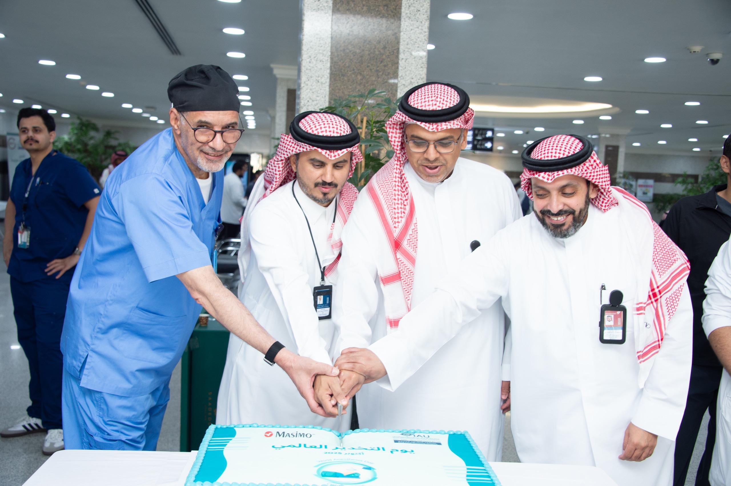 بمناسبة اليوم العالمي لطب التخدير، نظّم امس مستشفى الملك فهد الجامعي بالخبر، التابع لجامعة الإمام عبد الرحمن بن فيصل، فعالية ومعرضًا توعويًا وتثقيفيًا سلط الضوء على التطورات الحديثة في مجال طب التخدير، ودوره المحوري في ضمان سلامة المرضى ونجاح العمليات الجراحية بحضور الأستاذ الدكتور محمد الشهراني، عميد كلية الطب، والدكتور عبدالله بن عبدالسلام يوسف، المدير التنفيذي للمستشفى الجامعي بالخبر، ورئيس قسم التخدير الدكتور عمّار العمران إلى جانب عدد من الأطباء وأعضاء هيئة التدريس والمختصين وطلاب كلية الطب، حيث تجولوا في أركان المعرض واطلعوا على ما تضمنه من محتوى علمي وتوعوي متنوع.