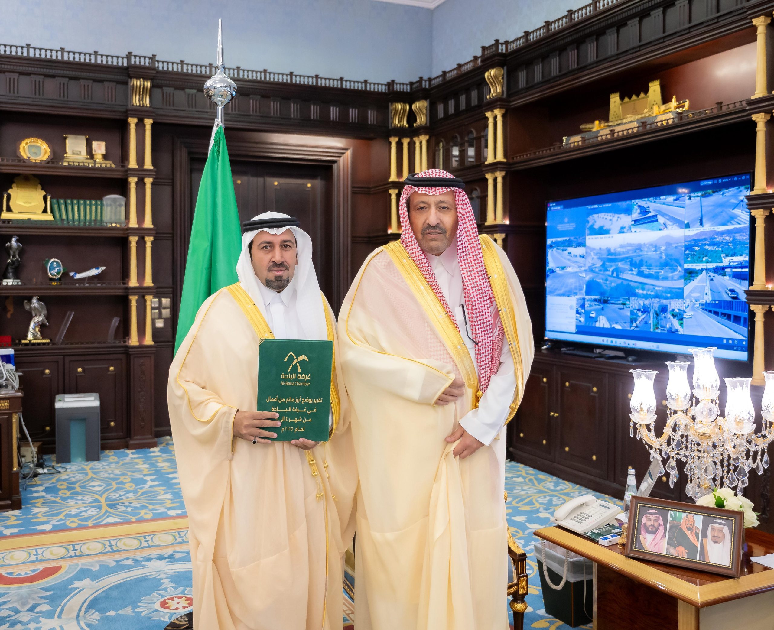 واطلع سموه على أبرز ما تضمّنه التقرير من منجزات، شملت تنفيذ أكثر من 50 فعالية وبرنامجًا تدريبيًا ولقاءات متنوعة، وتوقيع 6 اتفاقيات تعاون وشراكة مع عدد من الجهات الحكومية والقطاع الخاص، إضافة إلى تدشين الهوية البصرية الجديدة للغرفة، وإطلاق مشاريع تطويرية تشمل إعداد الخطة الاستراتيجية، والخارطة الاقتصادية لمنطقة الباحة، فضلاً عن عقد 7 اجتماعات لمجلس الإدارة وتنفيذ أكثر من 100 عمل خلال أربعة أشهر.