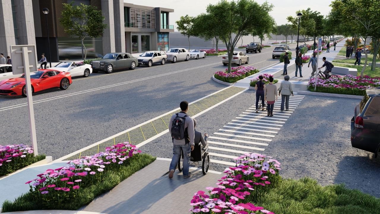 وأوضح بأن المشروع يضم أرصفة واسعة للمشاة، ومسارات مخصصة للدراجات على جانبي الشارعين، ومسطحات خضراء، وأشجار ظل بعدد يزيد عن 1500 شجرة، وكراسي للجلوس، وأعمدة إنارة جمالية، ومعابر آمنه للتنقل بين جانبي الشارع، إضافة إلى أعمال السفلتة.