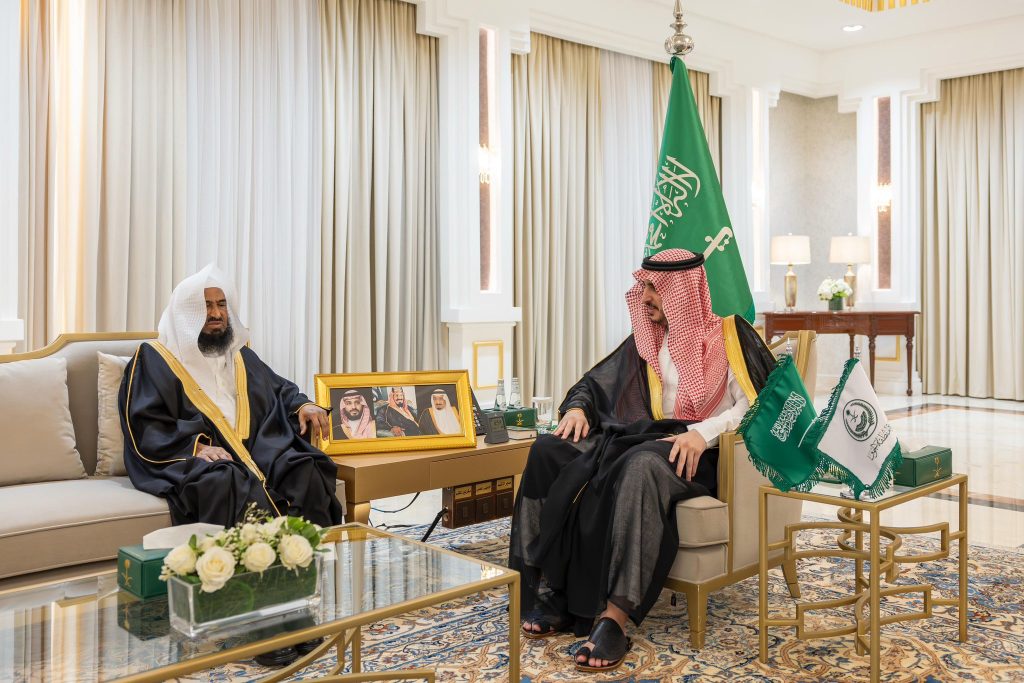 ورحّب سموّه في مستهل اللقاء بفضيلة الشيخ الدكتور البصيلي، مشيدًا بالدور الكبير الذي تقوم به هيئة كبار العلماء في نشر العلم الشرعي الصحيح، وبيان سماحة الدين الإسلامي، وترسيخ قيم الاعتدال والوسطية التي تقوم عليها منهجية المملكة العربية السعودية منذ توحيدها على يد الملك عبدالعزيز -طيّب الله ثراه-.