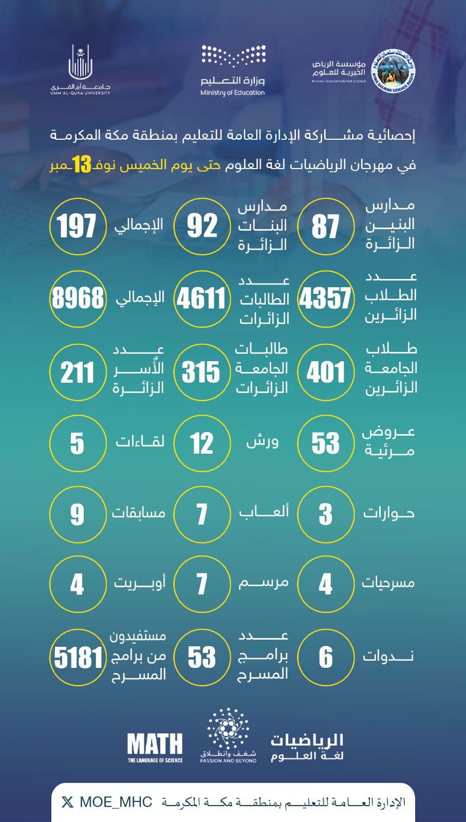 تعليم مكة يسجّل حضورًا لافتًا في الأسبوع الثاني من مهرجان “الرياضيات لغة العلوم”