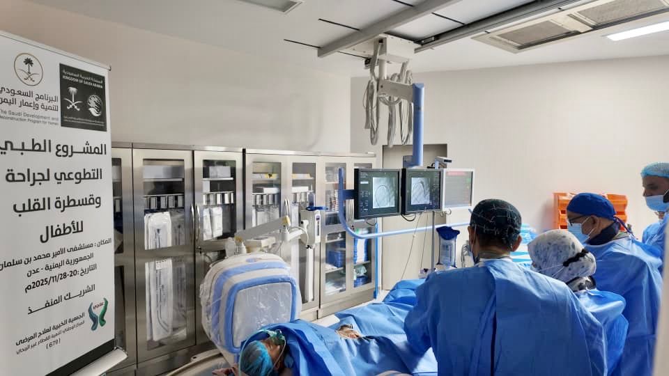 ينفذ مـركز الملك سلمان للإغاثة والأعمال الإنسانية، المشروع الطبي التطوعي لجراحة وقسطرة القلب في محافظة عدن، المقام خلال الفترة من (21) حتى (28) نوفمبر الجاري، بالتعاون مع البرنامج السعودي لتنمية وإعمار اليمن.