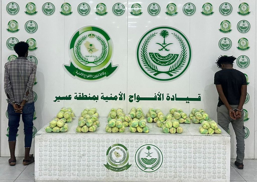 دوريات الأفواج الأمنية بمنطقة عسير تقبض على مخالفَيْن لنظام أمن الحدود لتهريبهما (20) كيلو جرامًا من نبات القات المخدر