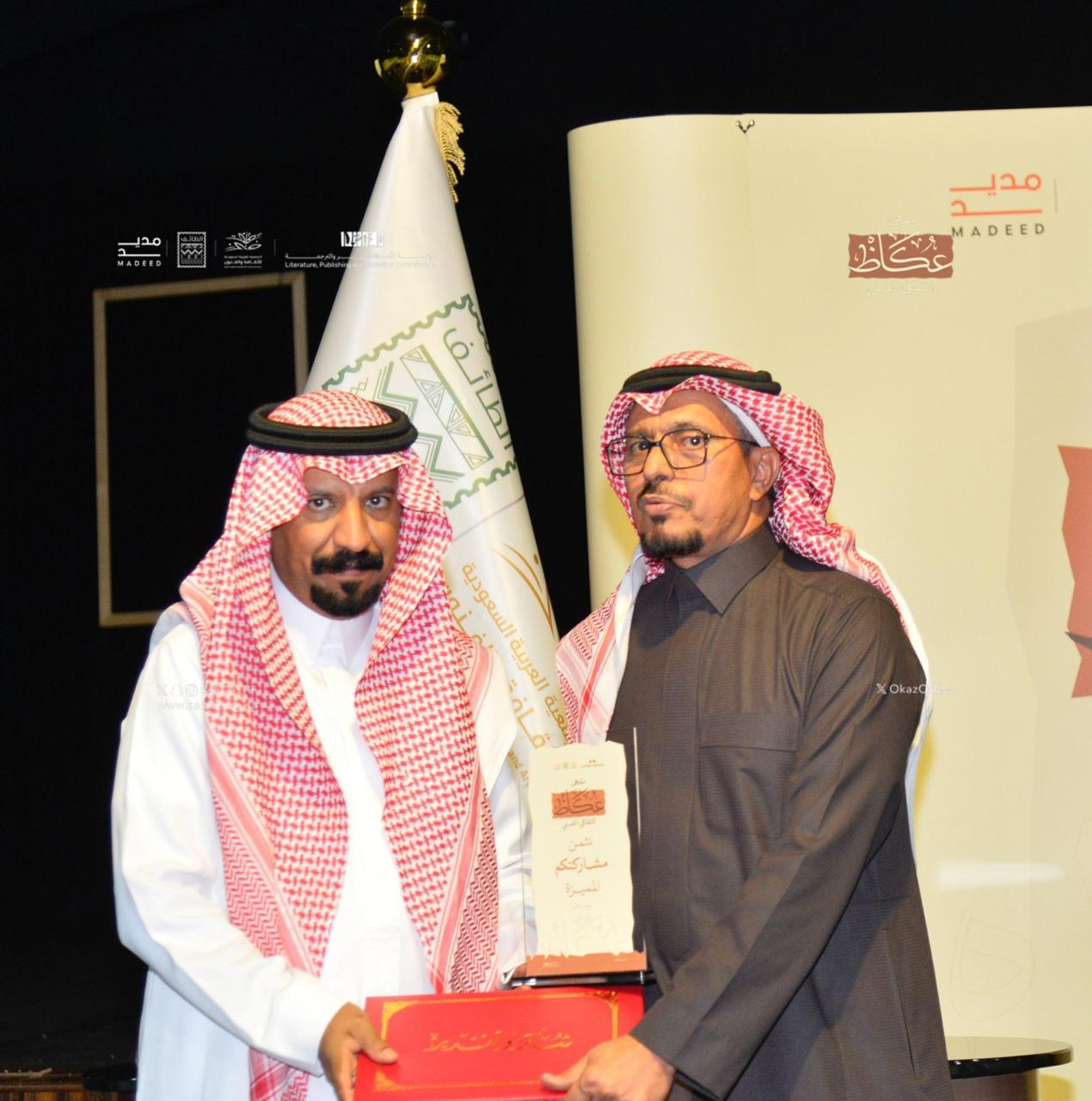 واختُتمت الأمسية بتكريم الشاعر مستور الذويبي والاعلامي عبدالله بن زنان وصاحبة افضل مشاركة تعقيبية.