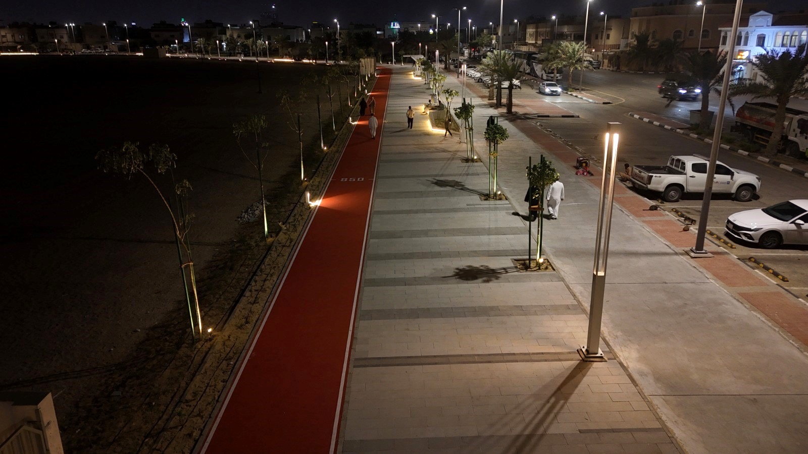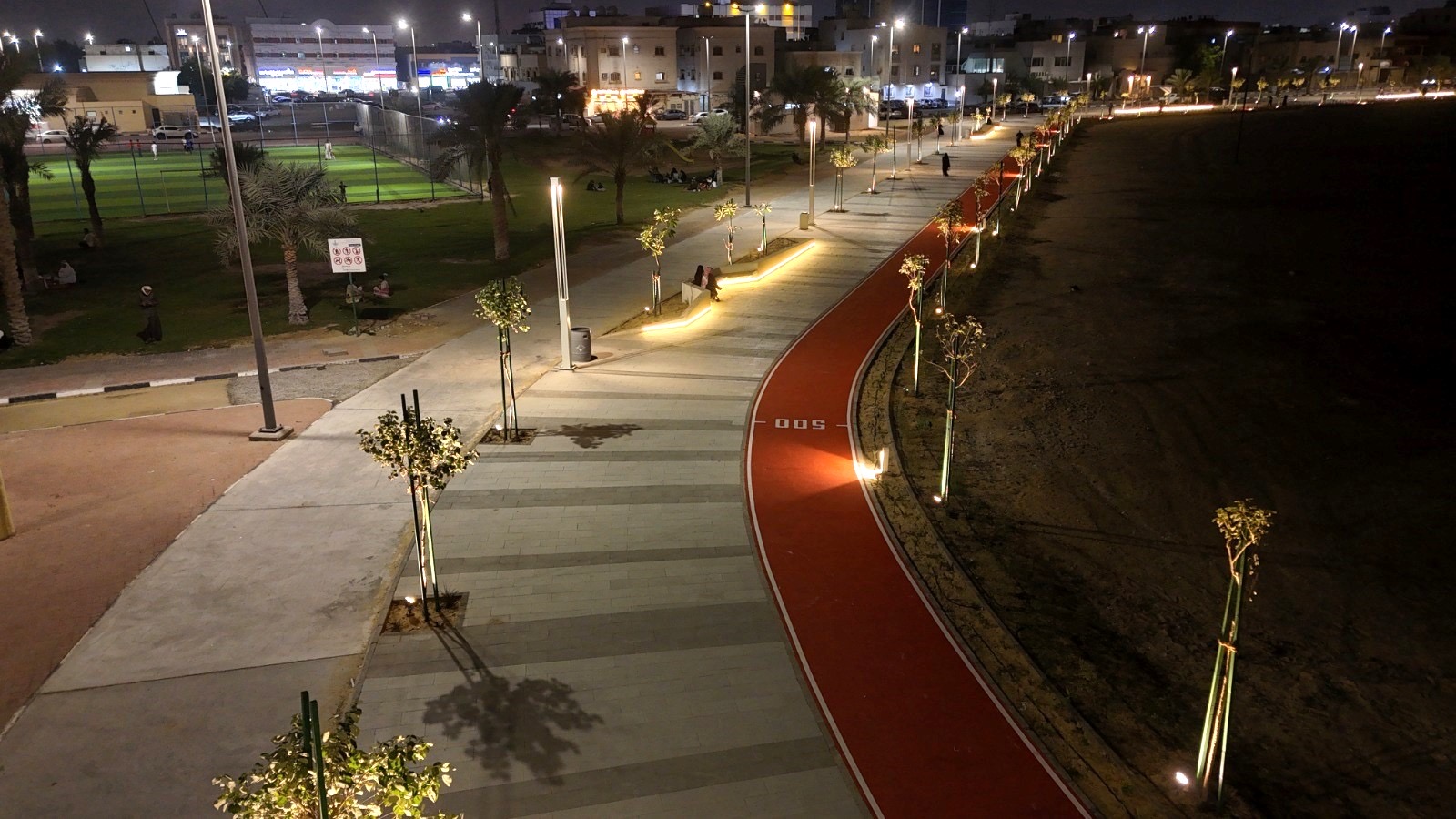 وقال، مضمار المشي يضم مسارًا مخصصًا للركض ومسارًا للدراجات الهوائية، بالإضافة إلى ممر للمشاة، جميعها صممت بطريقة عصرية تتيح تجربة ممتعة وآمنة للزوار، كما تم زراعة أشجار ونباتات مناسبة للأجواء المناخية في المنطقة، لتوفير بيئة خضراء مريحة تعكس الطابع الحضري للحي.