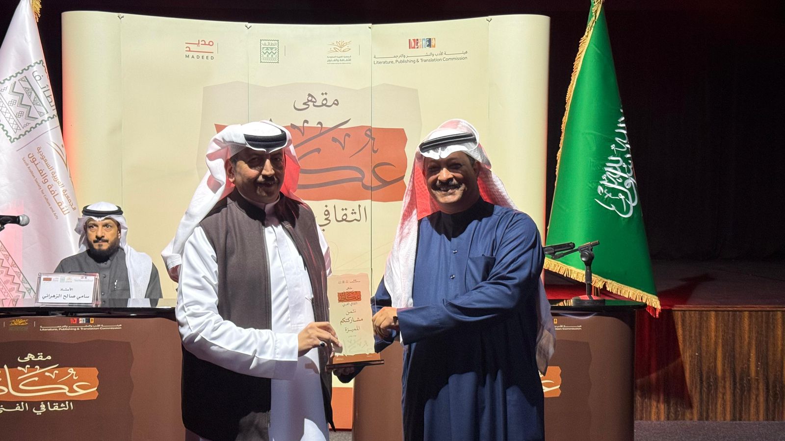 بدعم من هيئة الأدب والنشر والترجمة متمثلةً في برنامج مديد، أقام مقهى عكاظ الثقافي الفني جلسته السادسة، وذلك في مقر جمعية الثقافة والفنون بالطائف، ضمن سلسلة لقاءاته التي تُعنى بالحوار المعرفي والفني.اللقاء جاء بعنوان: “النص المسرحي باعتباره أدبًا: مقاربات بين الشاعرية والقصة والنص المسرحي”