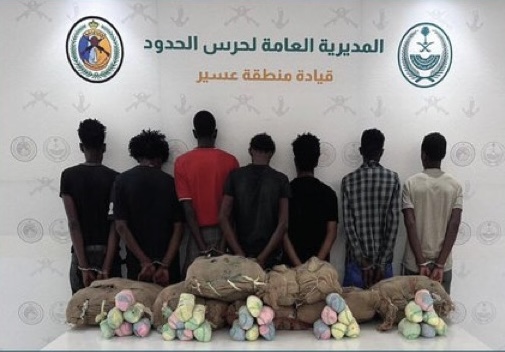 تمكنت الدوريات البرية لحرس الحدود في قطاع الحرث بمنطقة جازان من القبض على (7) مخالفين لنظام أمن الحدود من الجنسية الإثيوبية، لتهريبهم (140) كيلوجرامًا من نبات القات المخدر، واستكملت الإجراءات النظامية الأولية بحقهم ، وتسليمهم  والمضبوطات لجهة الاختصاص.