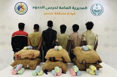 حرس الحدود بمنطقة عسير يقبض على (6) مخالفين لنظام أمن الحدود لتهريبهم (132) كيلوجرامًا من نبات القات المخدر