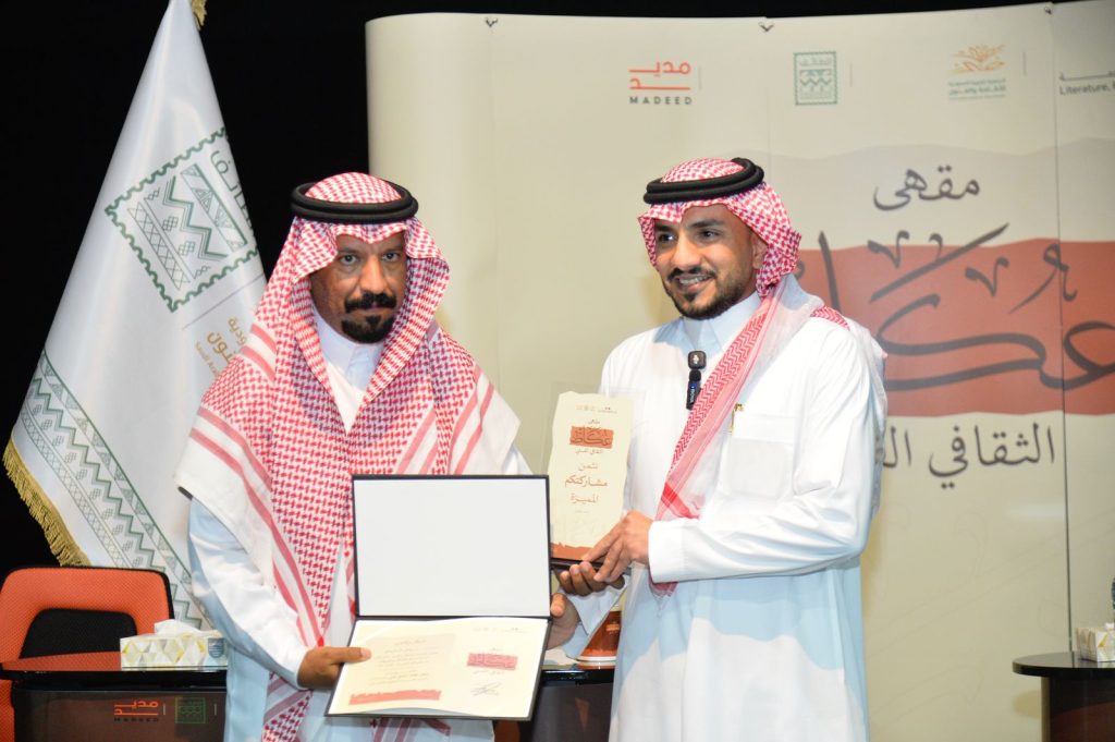 واختُتمت بتكريم المشاركين في هذه الجلسة من قبل مشرف مقهى عكاظ الثقافي مدير العلاقات والاعلام بالجمعية الاستاذ خالد الحارثي.
