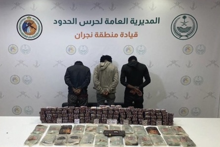 تمكنت الدوريات البرية لحرس الحدود في قطاع سقام بمنطقة نجران تقبض على (3) مخالفين لنظام أمن الحدود من الجنسية الإثيوبية، لتهريبهم (44,690) قرصًا خاضعًا لتنظيم التداول الطبي، و(26) كيلوجرامًا من مادة الحشيش المخدر، واستكملت الإجراءات النظامية الأولية بحقهم ، وتسليمهم والمضبوطات لجهة الاختصاص.