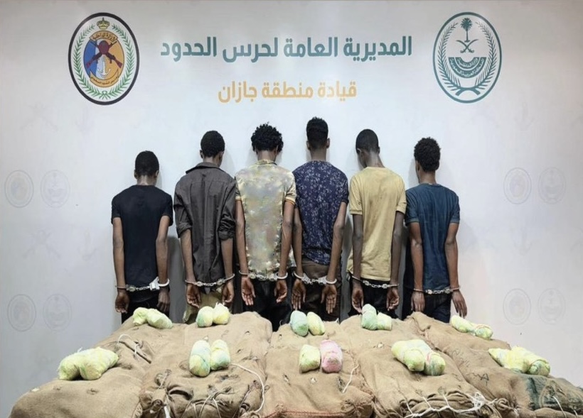 تمكنت الدوريات البرية لحرس الحدود في قطاع الدائر بمنطقة جازان تقبض على (6) مخالفين لنظام أمن الحدود من الجنسية الإثيوبية، لتهريبهم (200) كيلوجرام من نبات القات المخدر، واستكملت الإجراءات النظامية الأولية بحقهم، وتسليمهم والمضبوطات لجهة الاختصاص.