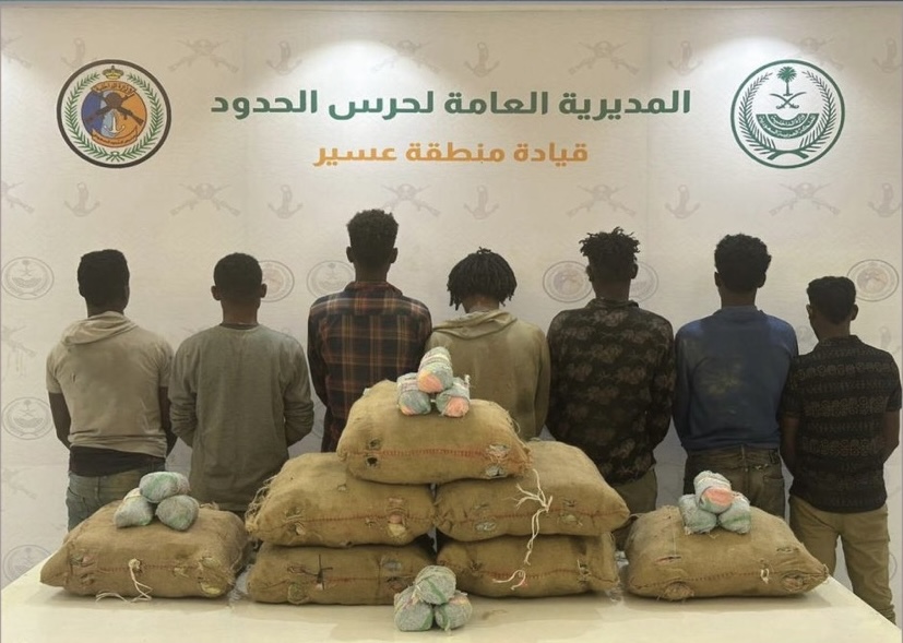تمكنت الدوريات البرية لحرس الحدود في قطاع الربوعة بمنطقة عسير تقبض على (7) مخالفين لنظام أمن الحدود من الجنسية الإثيوبية، لتهريبهم (105) كيلوجرامات من نبات القات المخدر، واستكملت الإجراءات النظامية الأولية بحقهما ، وتسليمهما والمضبوطات لجهة الاختصاص.