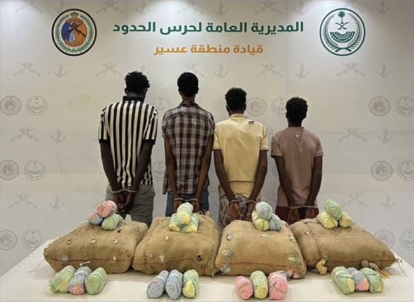 تمكنت الدوريات البرية لحرس الحدود في قطاع الربوعة بمنطقة عسير من القبض على (4) مخالفين لنظام أمنا لحدود من الجنسية الإثيوبية، لتهريبهم (80) كيلوجرامًا من نبات القات المخدر ، واستكملت الإجراءات النظامية الأولية بحقهم، وتسليمهم والمضبوطات لجهة الاختصاص.