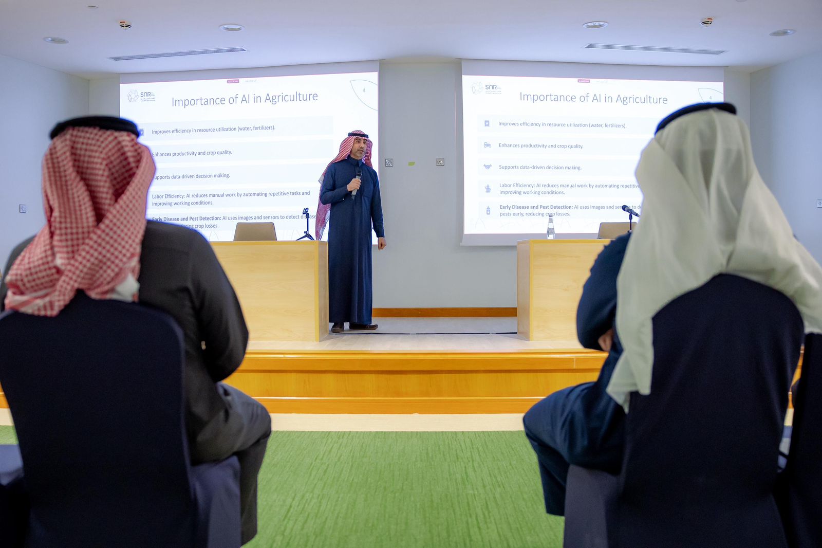 حيث ناقش المسار الأول «رؤية السعودية 2030 وأهداف التنمية المستدامة للاستخدام الأمثل للموارد والطاقة المتجددة وتعزيز كفاءة الإنفاق»، كما ركّزت الجلسة على تبنّي الذكاء الاصطناعي في زراعة النخيل، وإعادة تدوير المخلفات الزراعية كنموذج لتعزيز استدامة الموارد وتوطين الصناعات الابتكارية (مخلفات النخيل والتمور في السعودية)، إضافة إلى نماذج تحسين متعددة الأهداف لتخفيض كلفة تحلية المياه بالطاقة الشمسية.