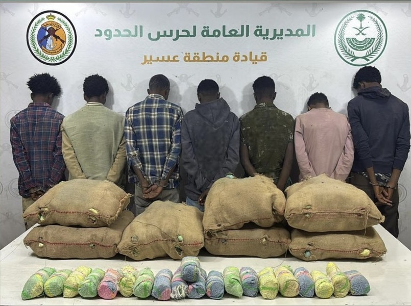 تمكنت الدوريات البرية لحرس الحدود في قطاع الربوعة بمنطقة عسير تقبض على (7) مخالفين لنظام أمن الحدود من الجنسية الإثيوبية، لتهريبهم (105) كيلوجرامات من نبات القات المخدر، واستكملت الإجراءات النظامية الاولية بحقهم ،وتسليمهم المضبوطات لجهة الاختصاص.