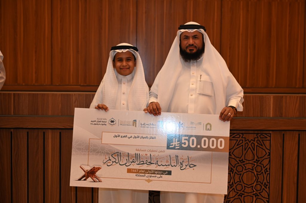 بحضور واصل : اختتمت مساء أمس فعاليات جائزة الناشئة لحفظ القرآن الكريم التي نظمتها اللجنة التنسيقية لجمعيات تحفيظ القرآن الكريم بالمملكة بالمدينة المنورة بمشاركة نخبة من حفظة القرآن الكريم، بنين وبنات من جميع مناطق المملكة برعاية كريمة من صاحب السمو الملكي الأمير سلمان بن سلطان بن عبدالعزيز آل سعود. وشهد الحفل حضور عدد من المسؤولين والشخصيات الدعوية والتربوية، إلى جانب أولياء أمور المشاركين، حيث تنافس الناشئون والناشئات في مستويات متعددة من حفظ القرآن الكريم وفروعه، وسط تنظيم مميز يجسد أهداف الجائزة التربوية ويعكس مكانة القرآن الكريم في نفوس المشاركين.