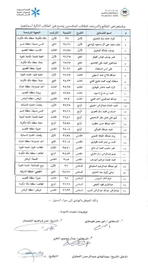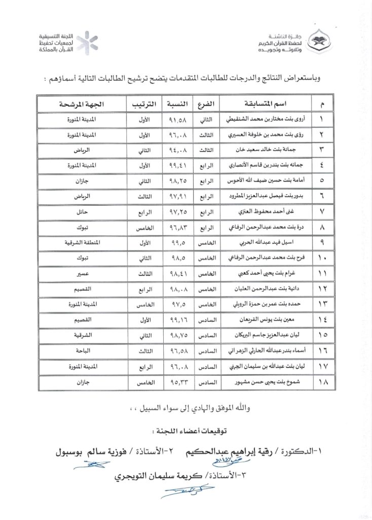اختتمت جائزة الناشئة لحفظ القرآن الكريم بالمدينة المنورة بتكريم الفائزين والفائزات من مختلف مناطق المملكة، من البنين والبنات، كما يظهر في قائمة الأسماء أدناه.