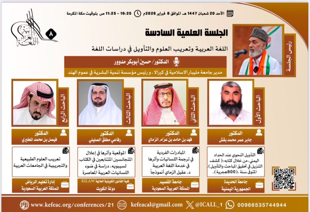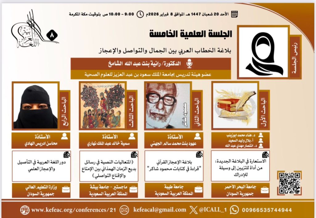 ويأتي انعقاد المؤتمر في عامة الثامن على التوالي وسط مشاركات محلية ودولية، في أجواء علمية رصينة تعكس حرص اللجنة المنظمة على تعزيز البحث العلمي، وتبادل الخبرات المعرفية بين الأكاديميين والباحثين من مختلف حقول اللغة العربية وآدابها، وقد روعي في إعداد جدول أعمال المؤتمر أن تتسم جلساته بالاتساق في المحاور، والتدرج في الموضوعات، بما يحقق أهدافه العلمية والفكرية، ويواكب النجاحات المتتالية التي حققتها سلسلة مؤتمرات مكة السابقة، سواء الافتراضية أو الحضورية.