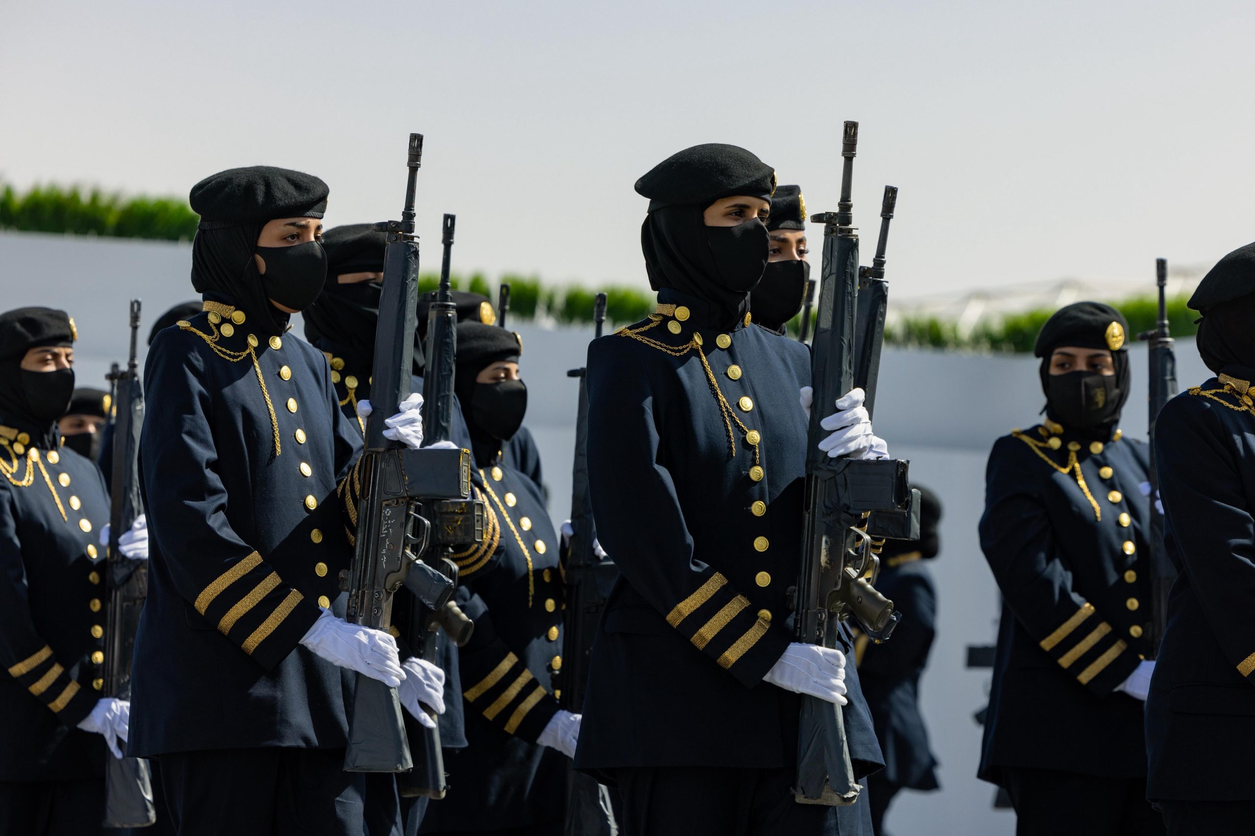 يستعرض المعهد النسائي بالأمن العام، لزوار جناح وزارة الداخلية بمعرض الدفاع العالمي 2026 م، في مدينة الرياض، الذي يقام في الفترة من (8) إلى (12) فبراير الجاري، برعاية خادم الحرمين الشريفين الملك سلمان بن عبدالعزيز آل سعود – حفظه الله، (الفصيل الصامت) لتشكيل مهارات التعامل الاستعراضي باستخدام السلاح مع الفرقة الموسيقية.