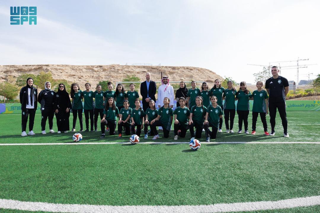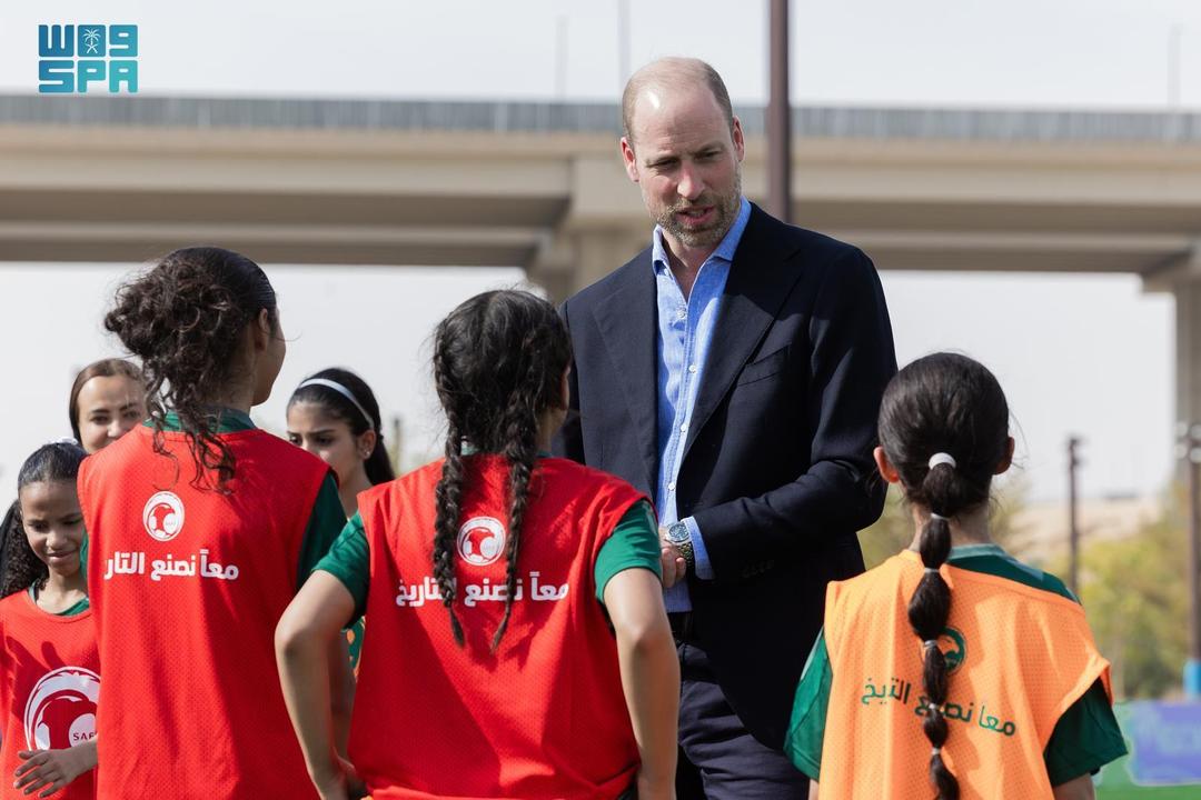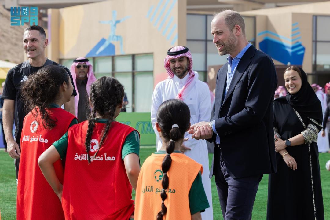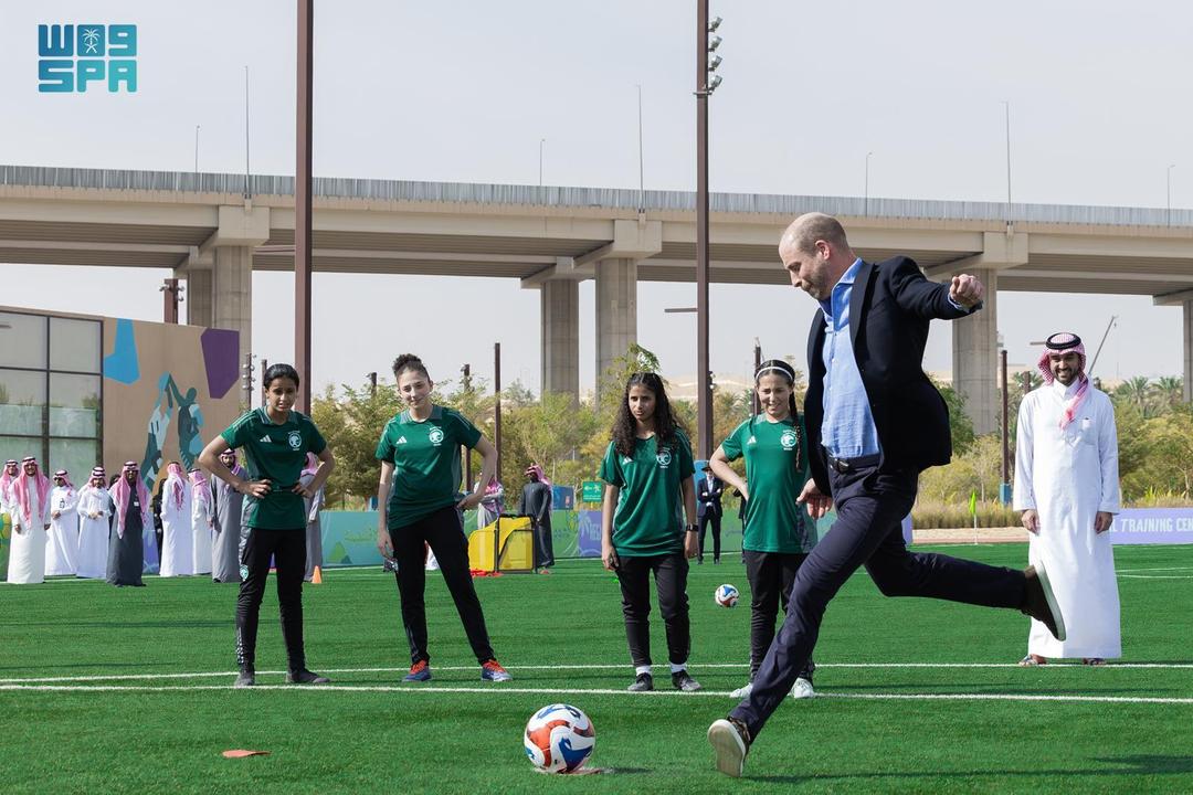 شهد صاحب السمو الملكي الأمير ويليام أمير ويلز ولي عهد المملكة المتحدة لبريطانيا العظمى وإيرلندا الشمالية، اليوم، الحصة التدريبية اليومية للاعبات مراكز التدريب الإقليمية للبنات، التي أقيمت في مدينة محمد بن سلمان غير الربحية “مسك”، بحضور صاحب السمو الملكي الأمير عبدالعزيز بن تركي بن فيصل وزير الرياضة, والرئيس التنفيذي لمؤسسة “مسك” الدكتور بدر البدر.