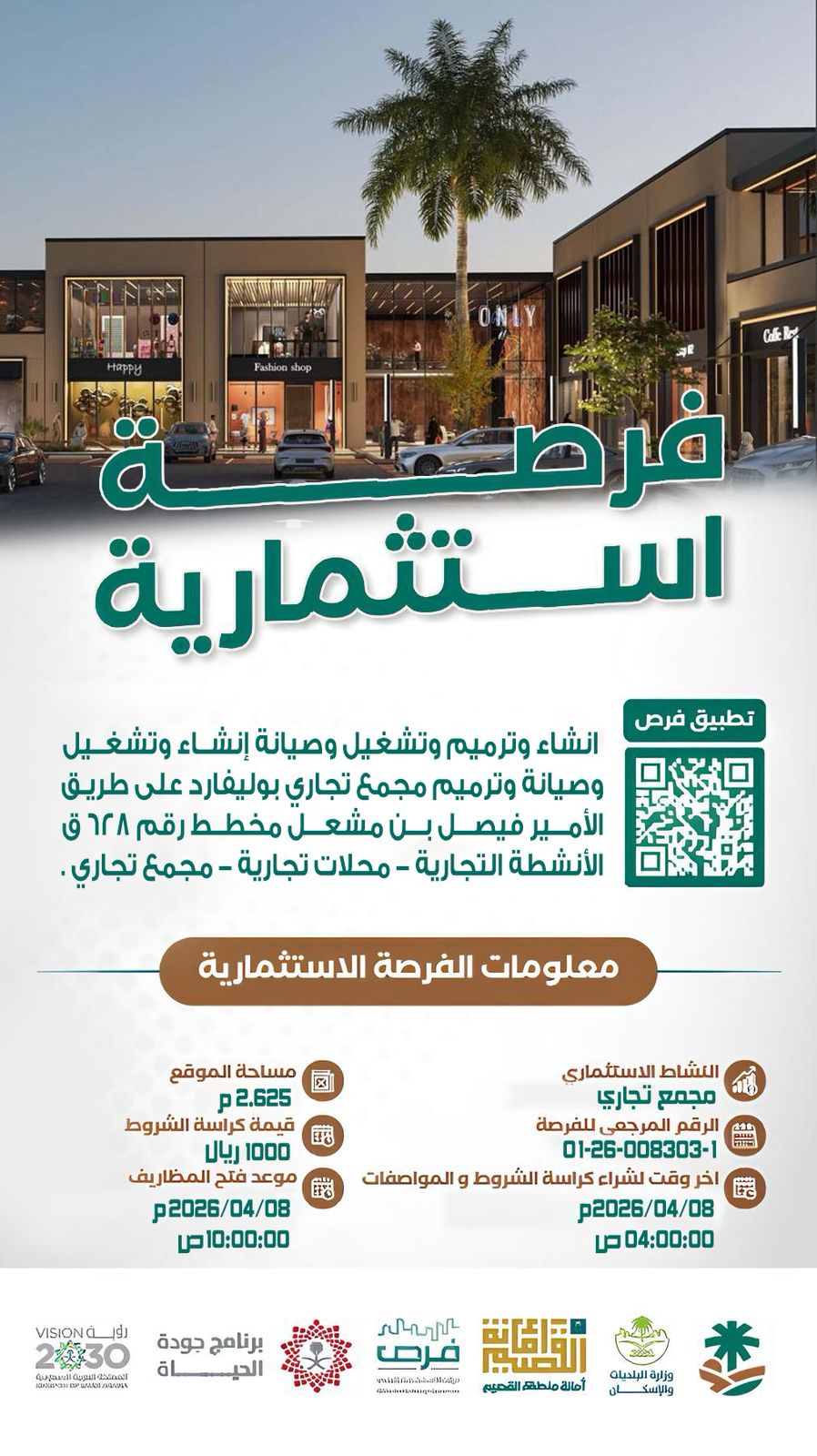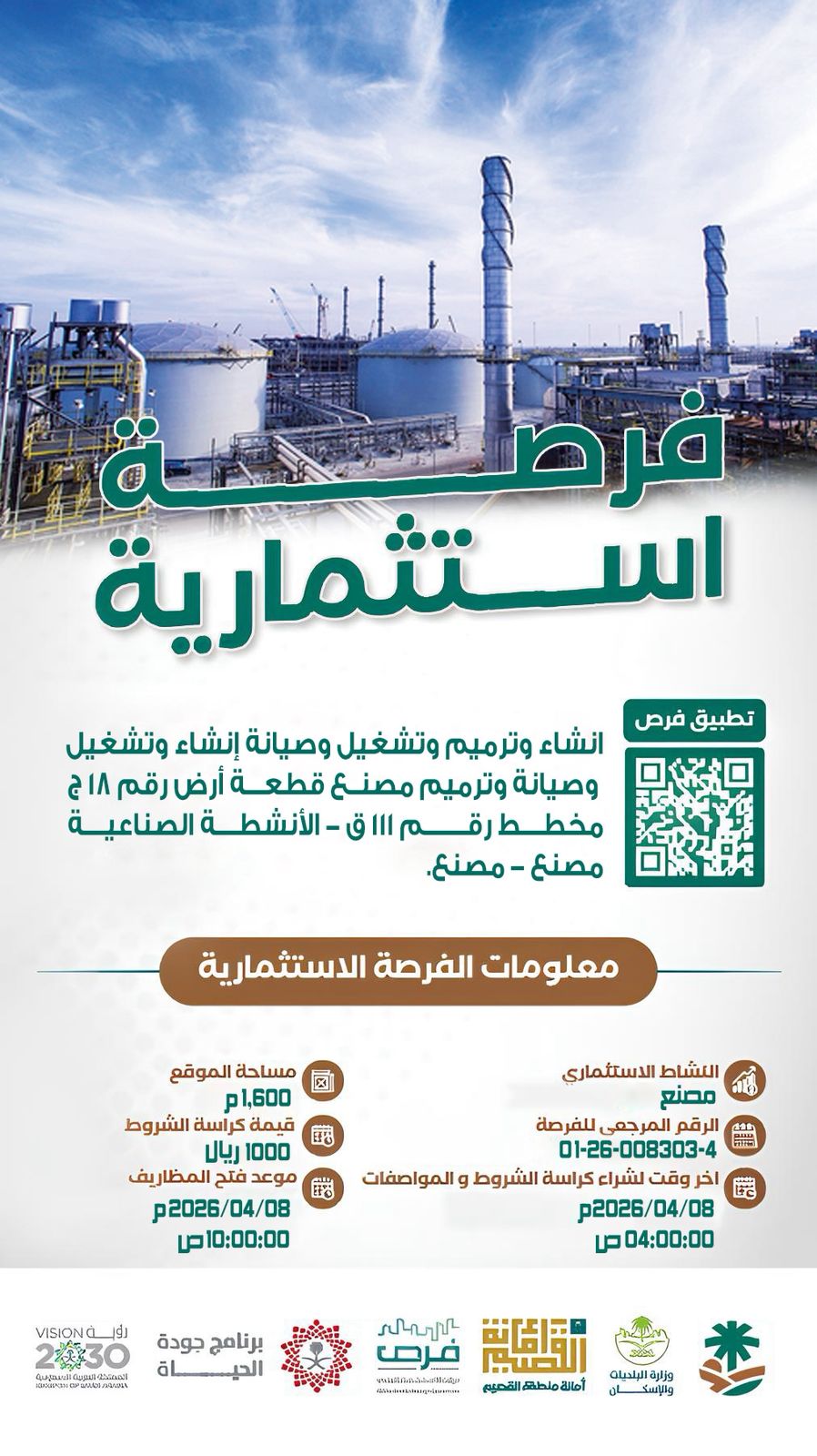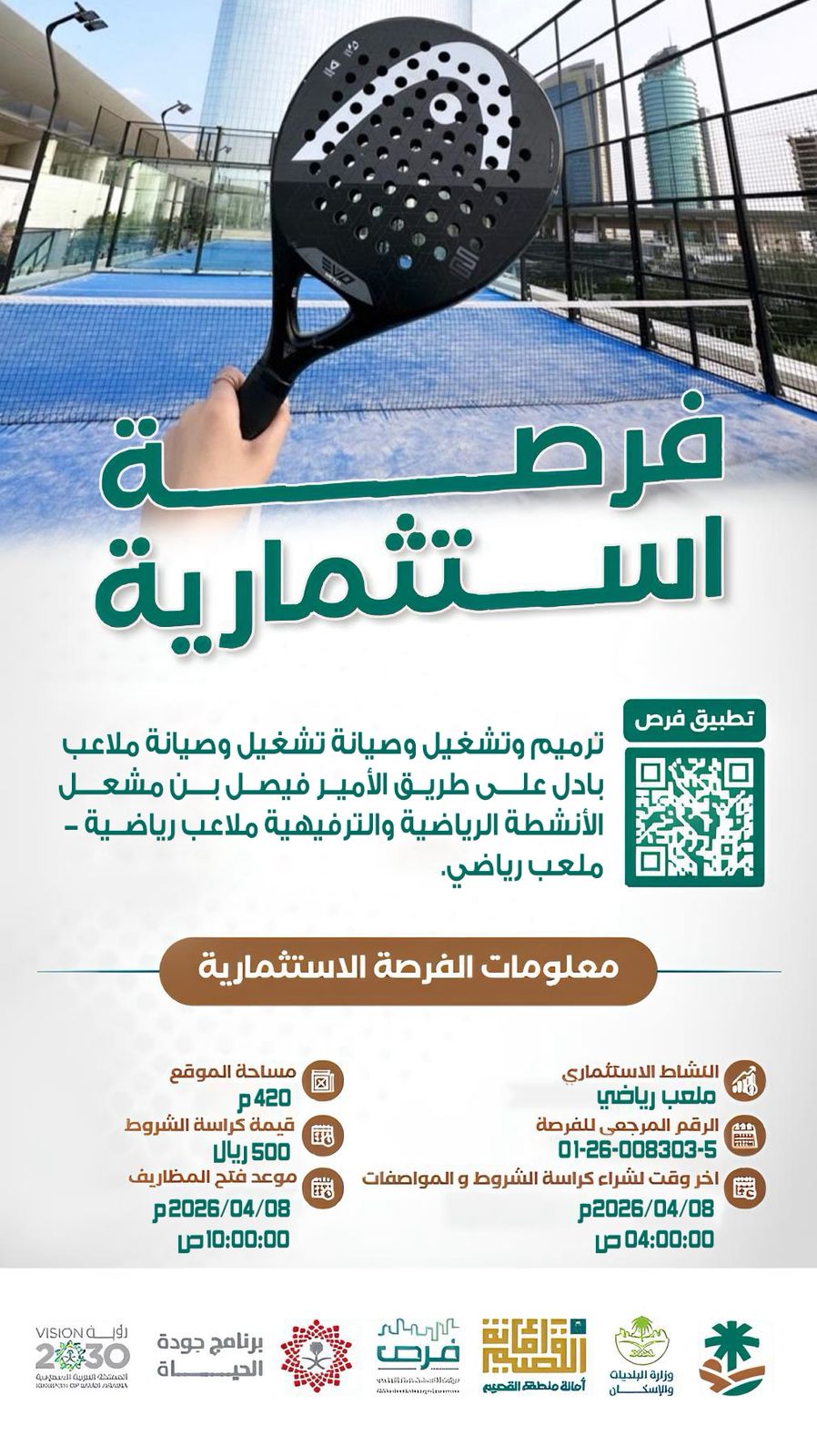 وتتنوع الفرص المطروحة بين أنشطة تجارية وصناعية وترفيهية إضافة إلى ملاعب بما يسهم في تطوير مسار الاستثمارات وتحقيق التوازن التنموي ورفع جودة الحياة وتوفير خيارات استثمارية متعددة تلبي احتياجات المستثمرين.