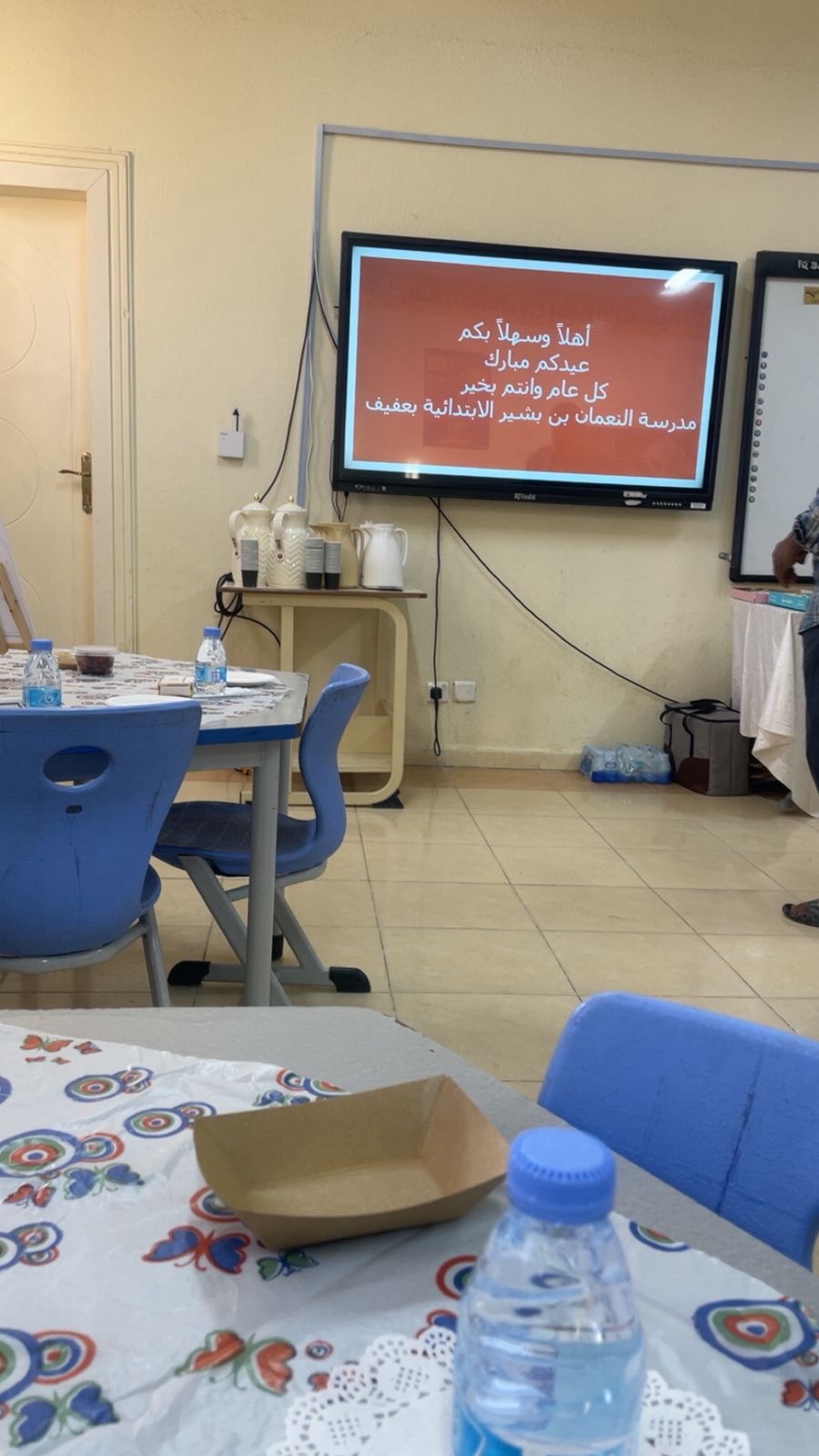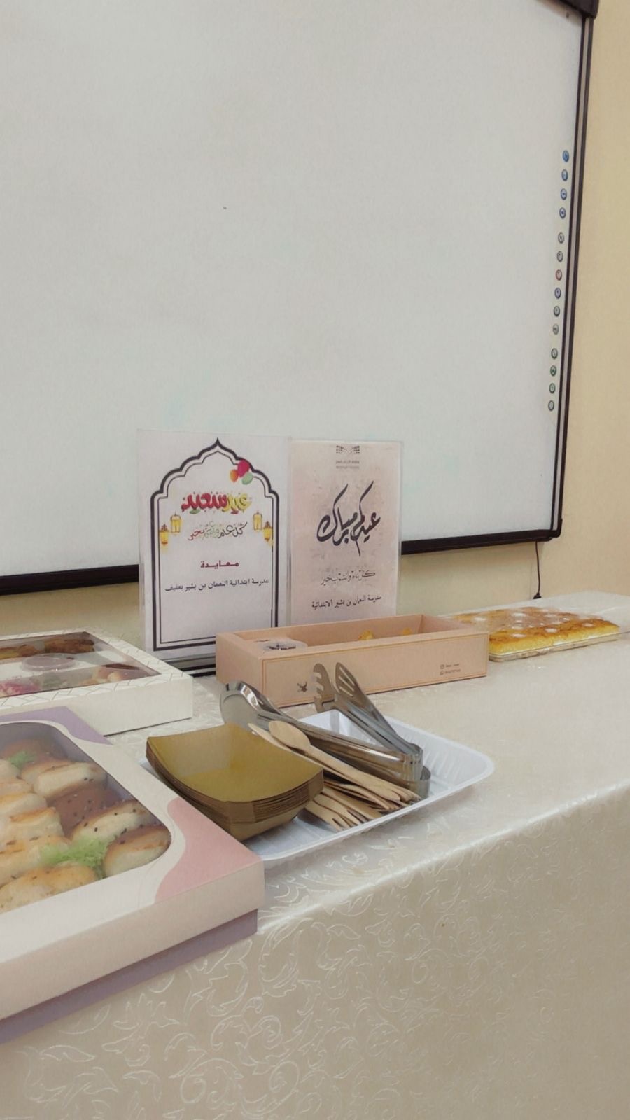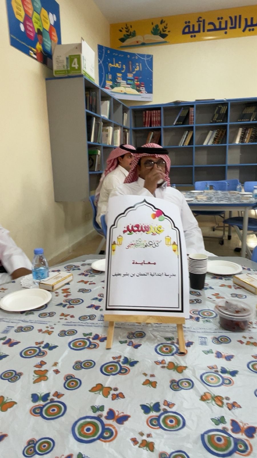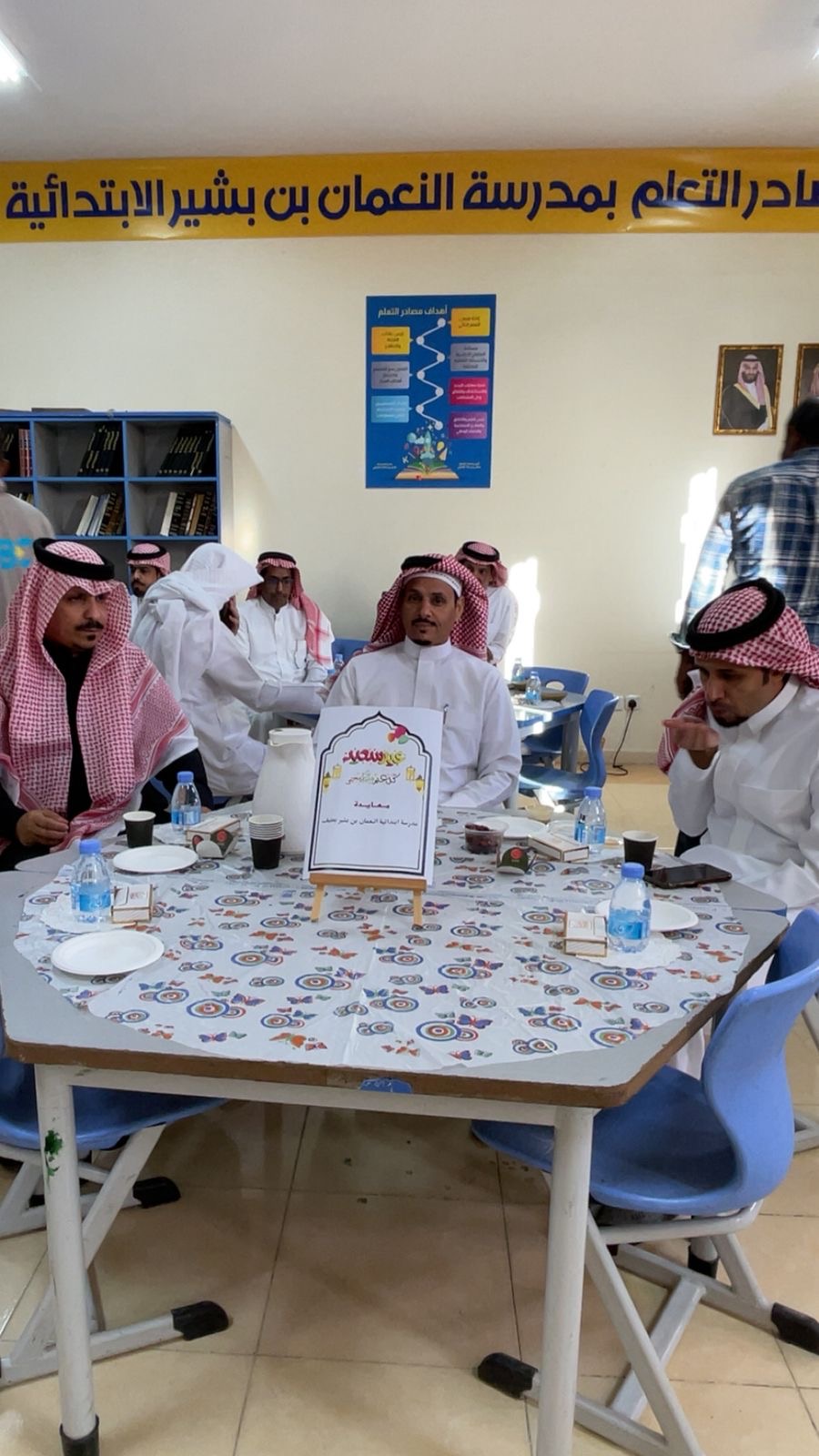 أقامت مدرسة النعمان بن بشير الابتدائية بمحافظة عفيف صباح اليوم حفل معايدة لمنسوبيها من الكادر التعليمي والإداري، وذلك بمناسبة عيد الفطر المبارك، بحضور مدير المدرسة وجميع الزملاء.