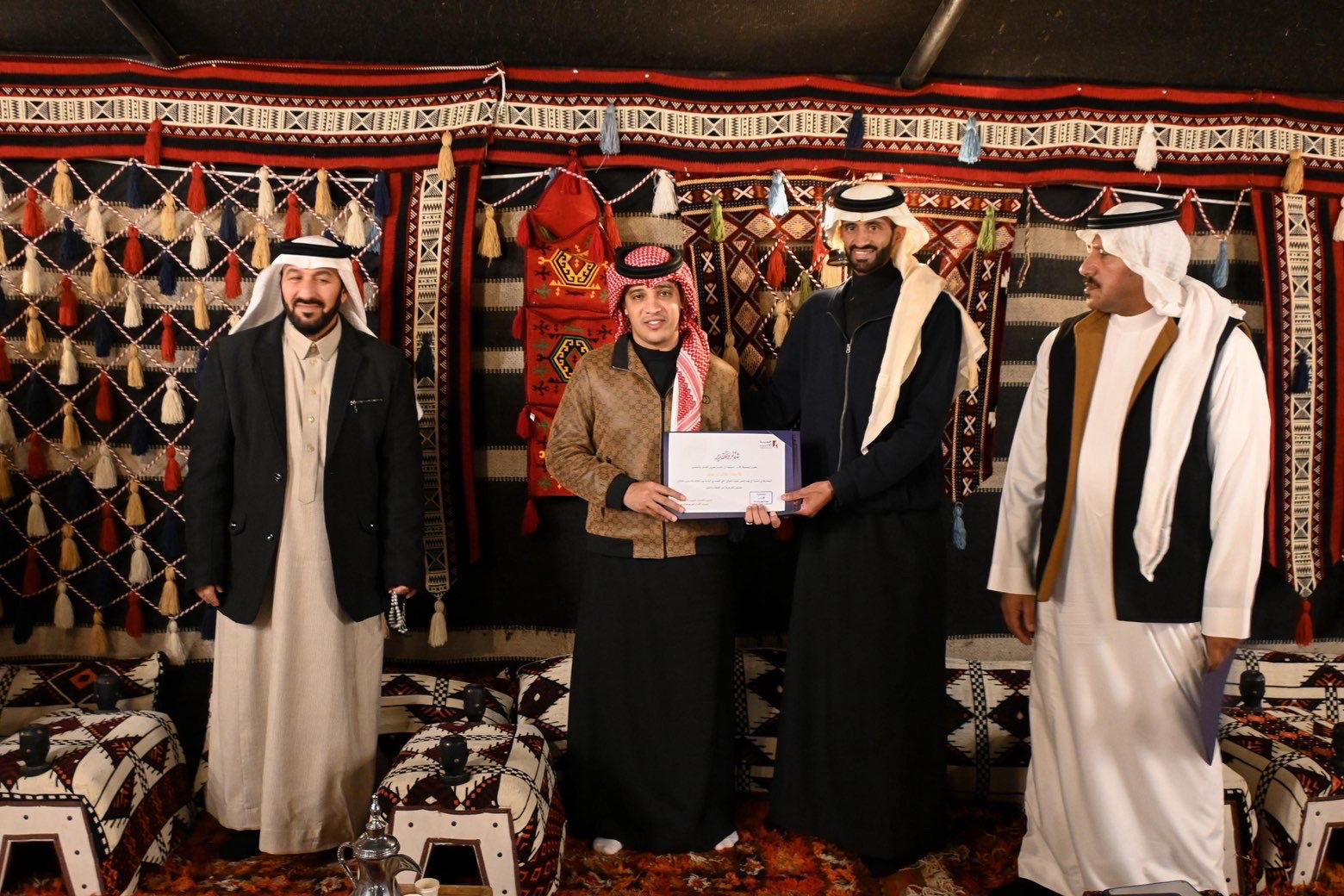 وفي ختام الأمسية كرَّم رئيس سفارة جمعية الادب المهنية بالباحة الضيوف ومدير الأمسية بشهادات شكر وتقدير ، كما قدم شهادة مماثلة لصاحب شتوية سهيل الأستاذ فيصل شراز لاستضافته الأمسية ، لافتًا النظر إلى أن الأمسيات القادمة ستكون استهلالًا للربع الثاني من العام ٢٠٢٦ بمشيئة الله .
